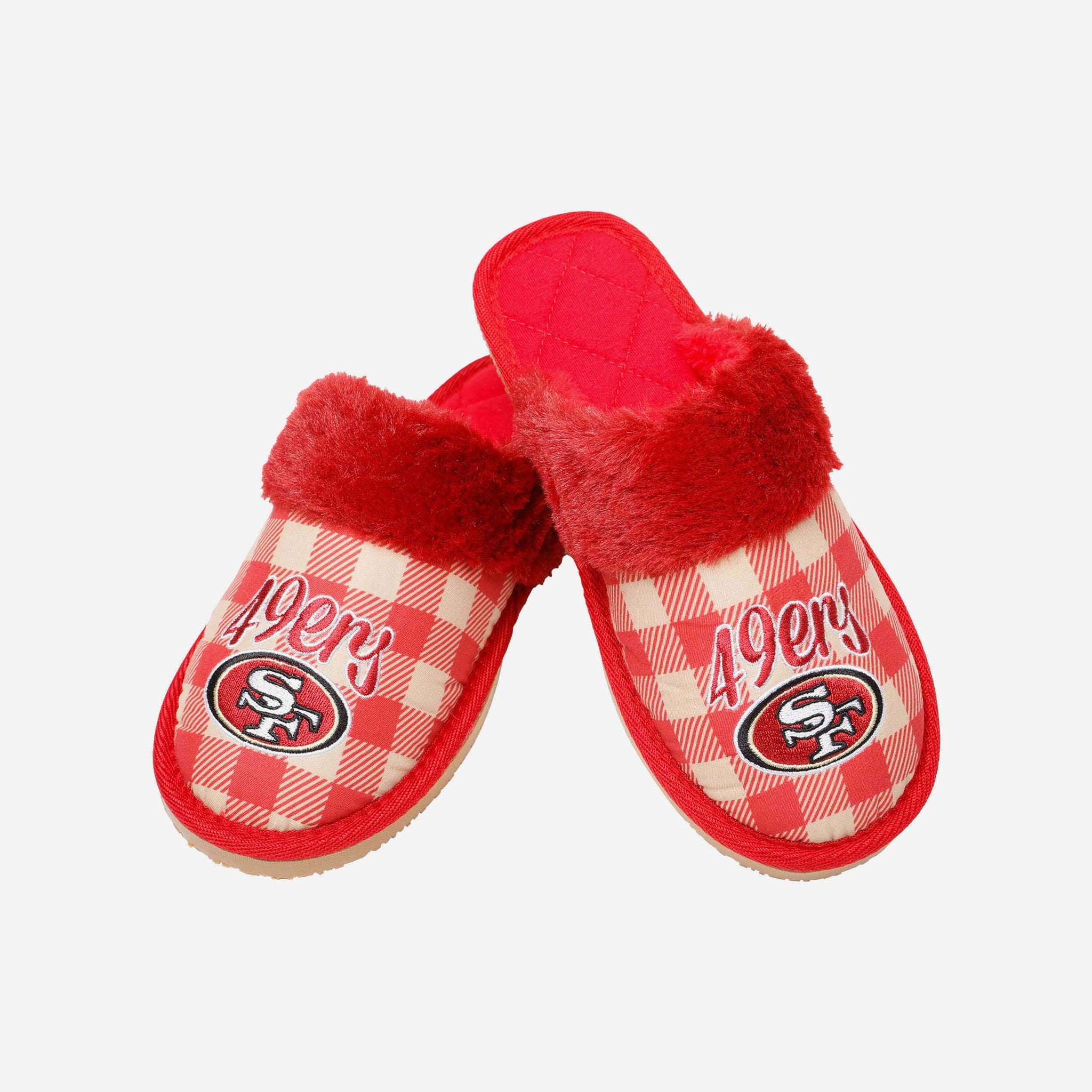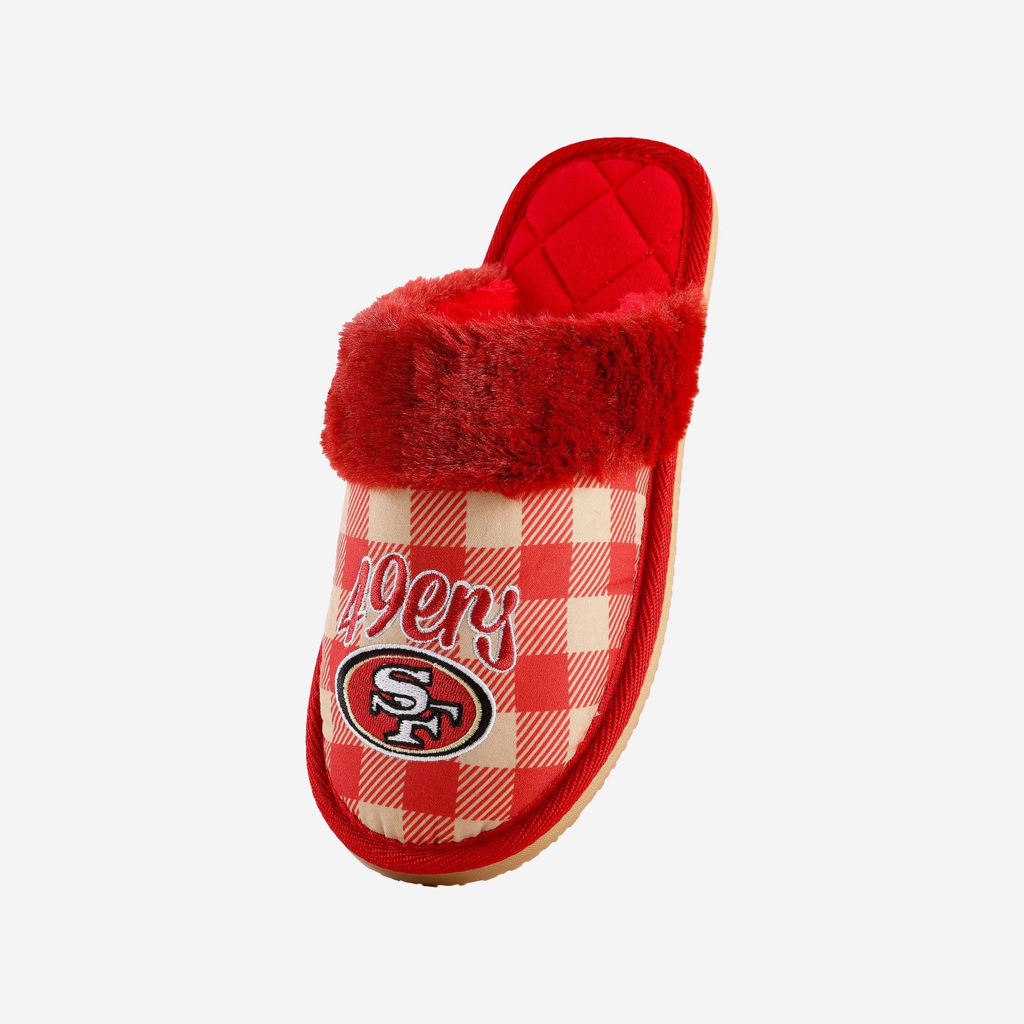 San Francisco 49ers Womens Plaid Sherpa Mule Slipper FOCO - FOCO.com