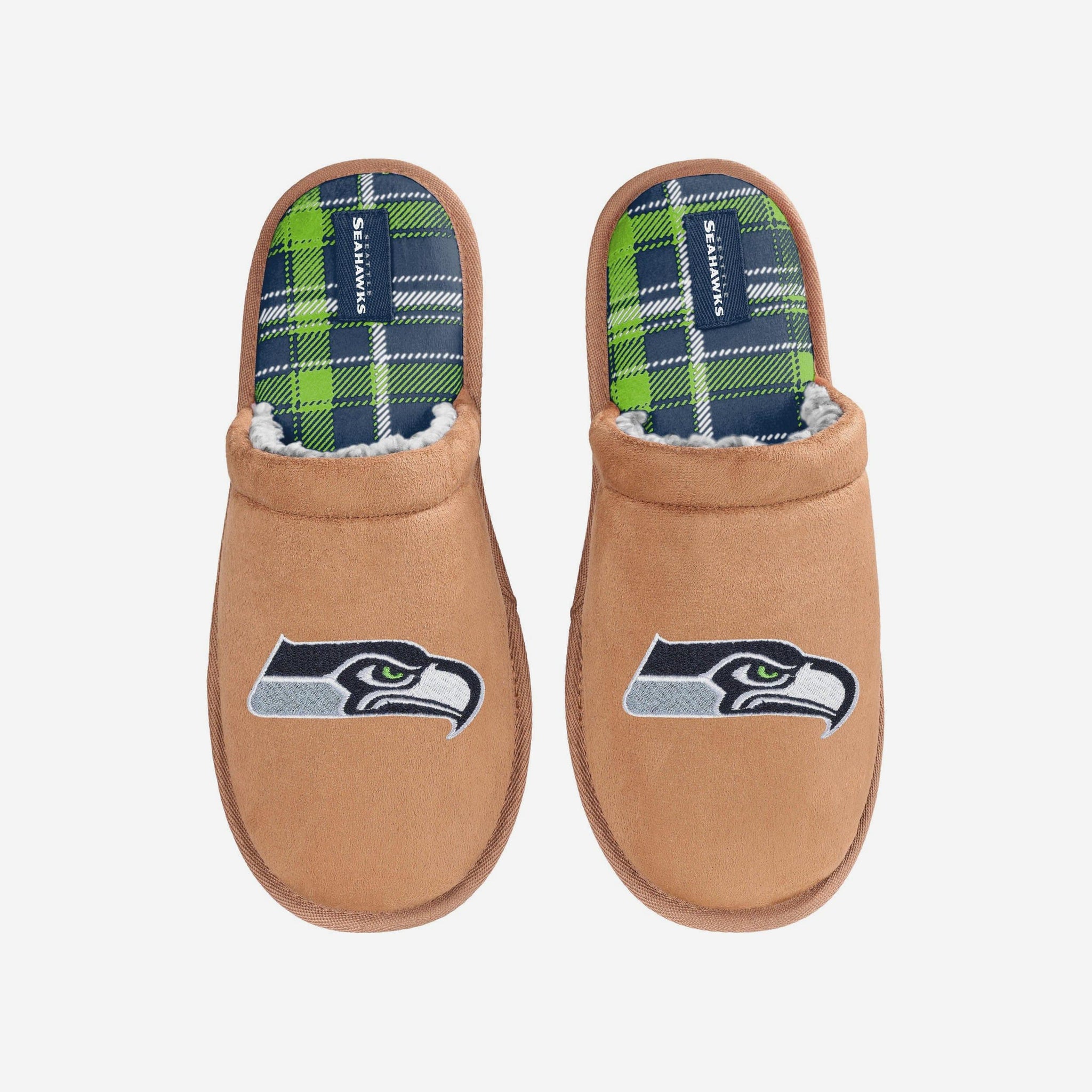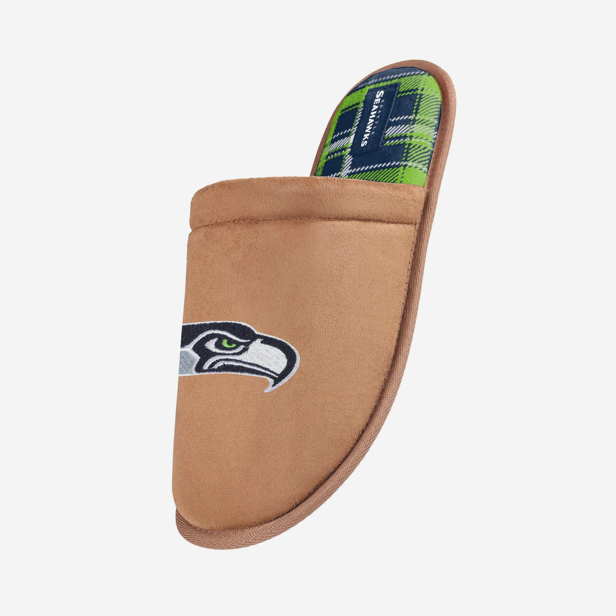 Gameday comfort just got a major upgrade. Slide into cozy fandom and kick back like a champion with the Seattle Seahawks Flannel Lined Brown Suede Scuff Slippers.
