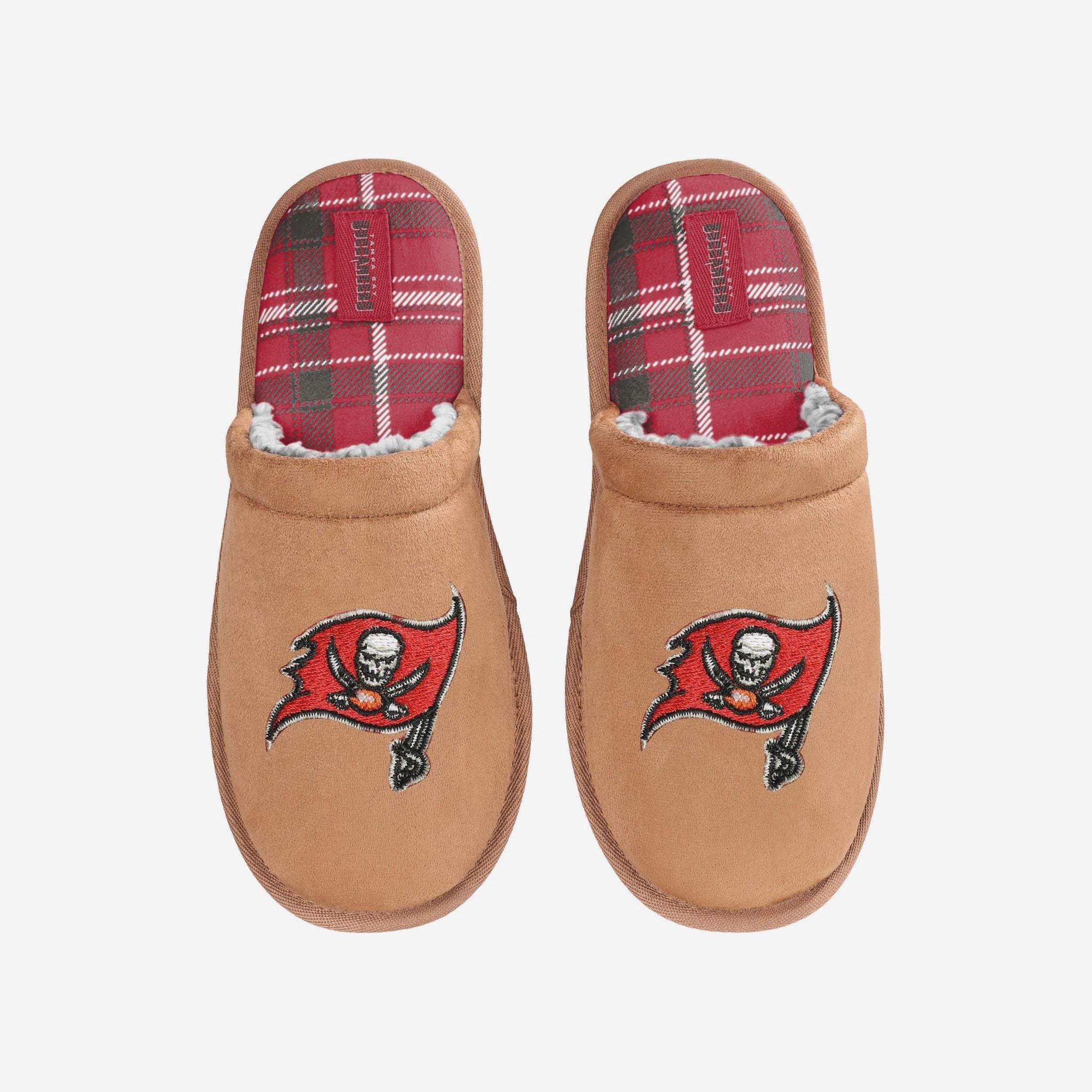 Tampa Bay Buccaneers Flannel Lined Brown Suede Scuff Slipper FOCO S - FOCO.com