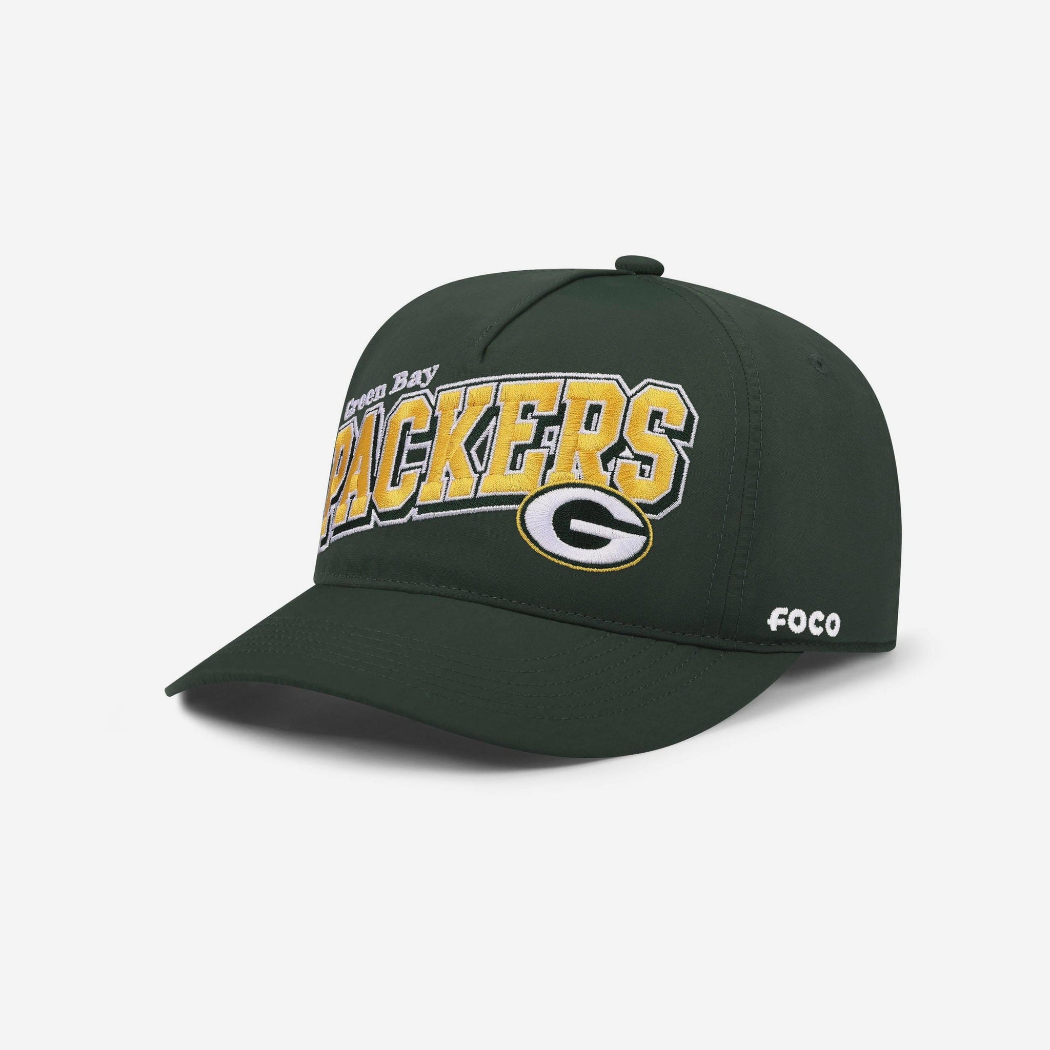 Green Bay Packers Wavy Wordmark Poly Marquee RF Cap FOCO - FOCO.com