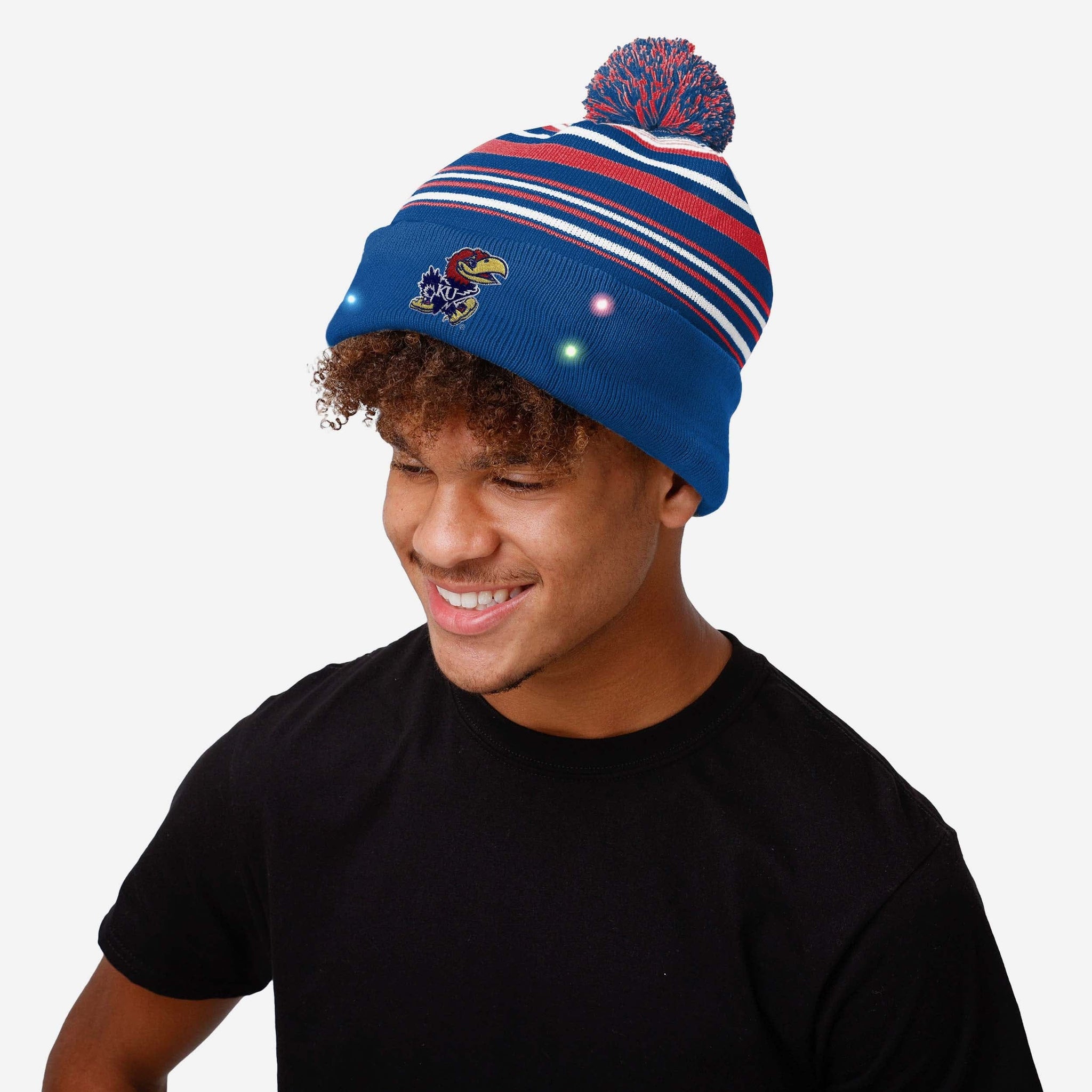 Braving the chilly weather? That's just another opportunity to let your team spirit shine when you're wearing this Kansas Jayhawks Horizontal Stripe Light Up Beanie.