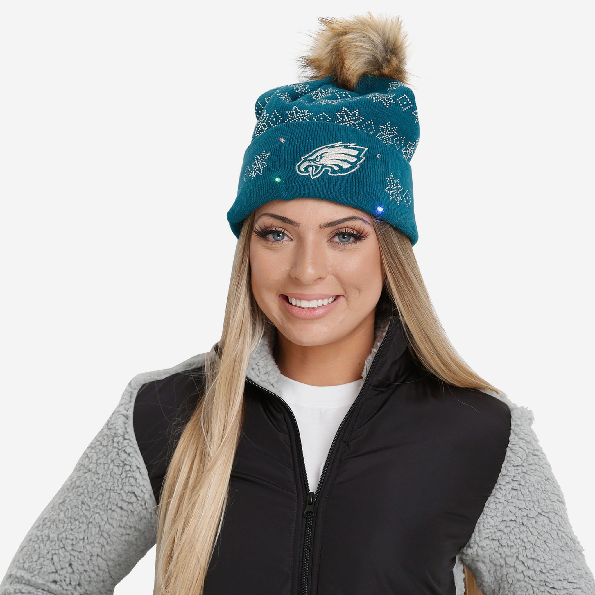 Chilly weather? Snow day? All that means is an opportunity to let your team spirit shine brighter than ever before! Make sure your fan fashion shines like a beacon of greatness by rocking this Philadelphia Eagles Rhinestone Light Up Beanie!