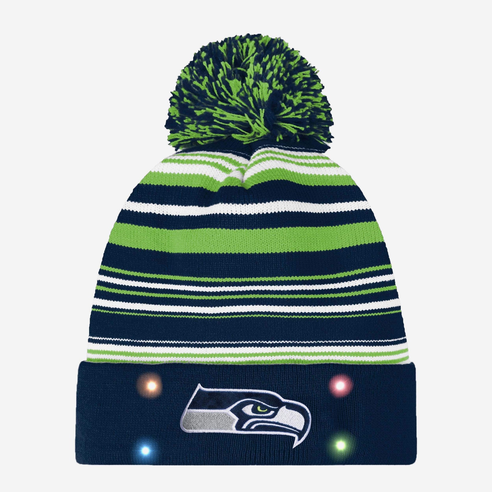 Braving the chilly weather? That's just another opportunity to let your team spirit shine when you're wearing this Seattle Seahawks Horizontal Stripe Light Up Beanie.