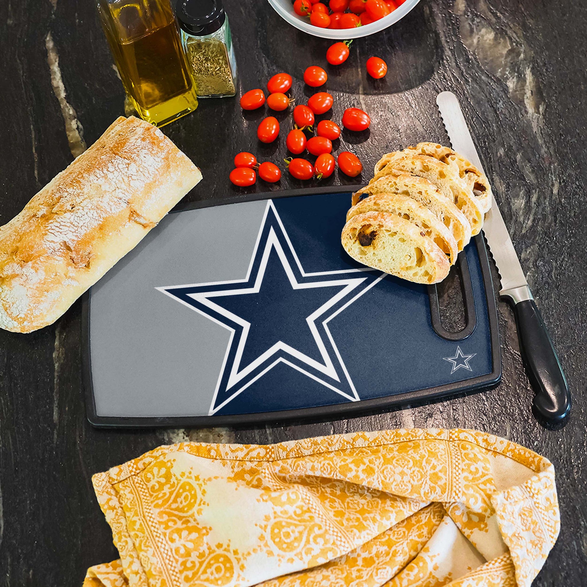 Rep the team while you prep the meal. With this Dallas Cowboys Big Logo Cutting Board as your sous chef in the kitchen, your gameday is about to go gourmet.