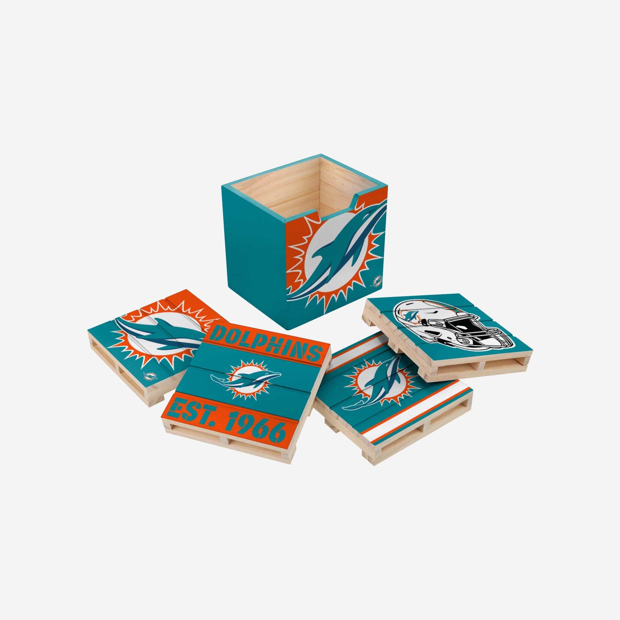 Championship rings? Amazing! Rings on the coffee table? Decidedly less so. Enjoy some tasty beverages while keeping your fancave tidy on gameday with this Miami Dolphins 4 Pack Pallet Coaster Set.