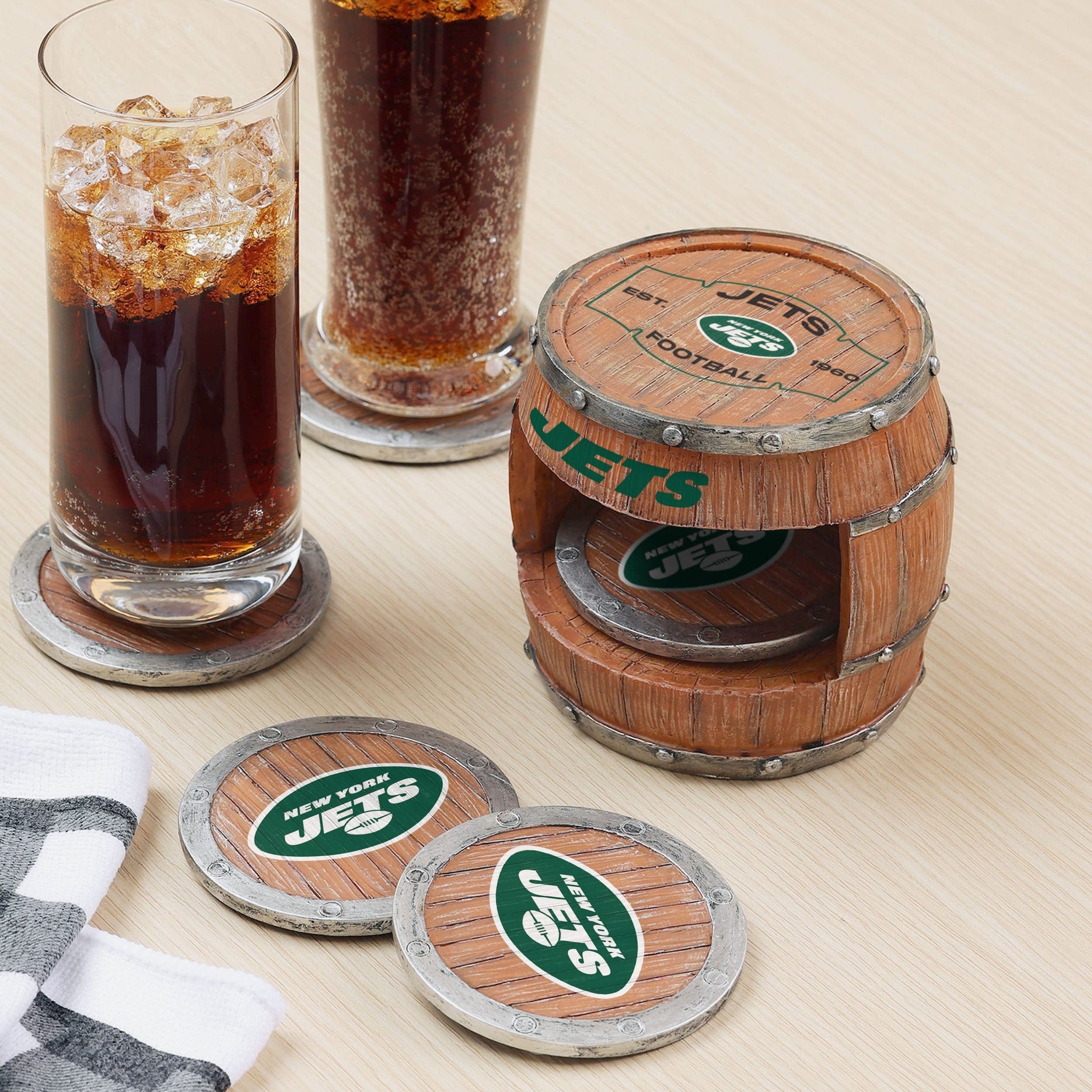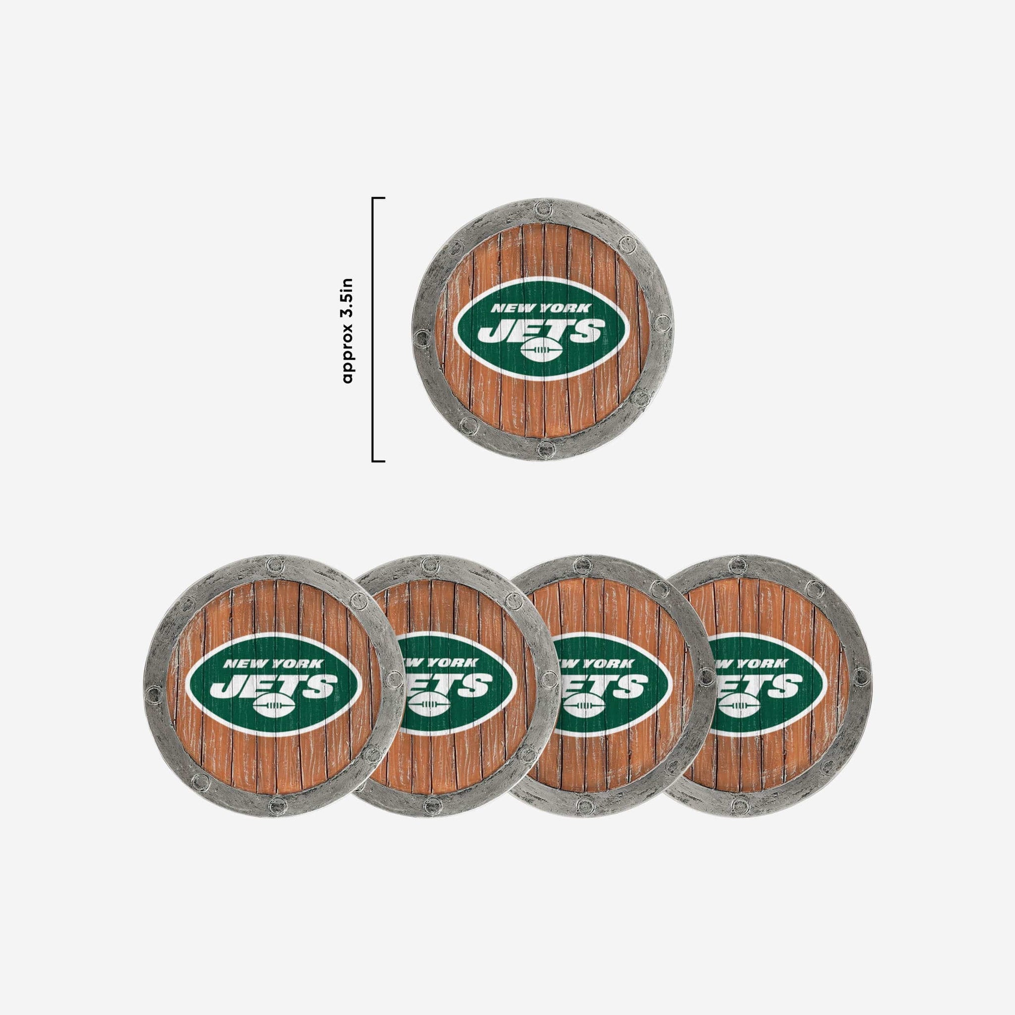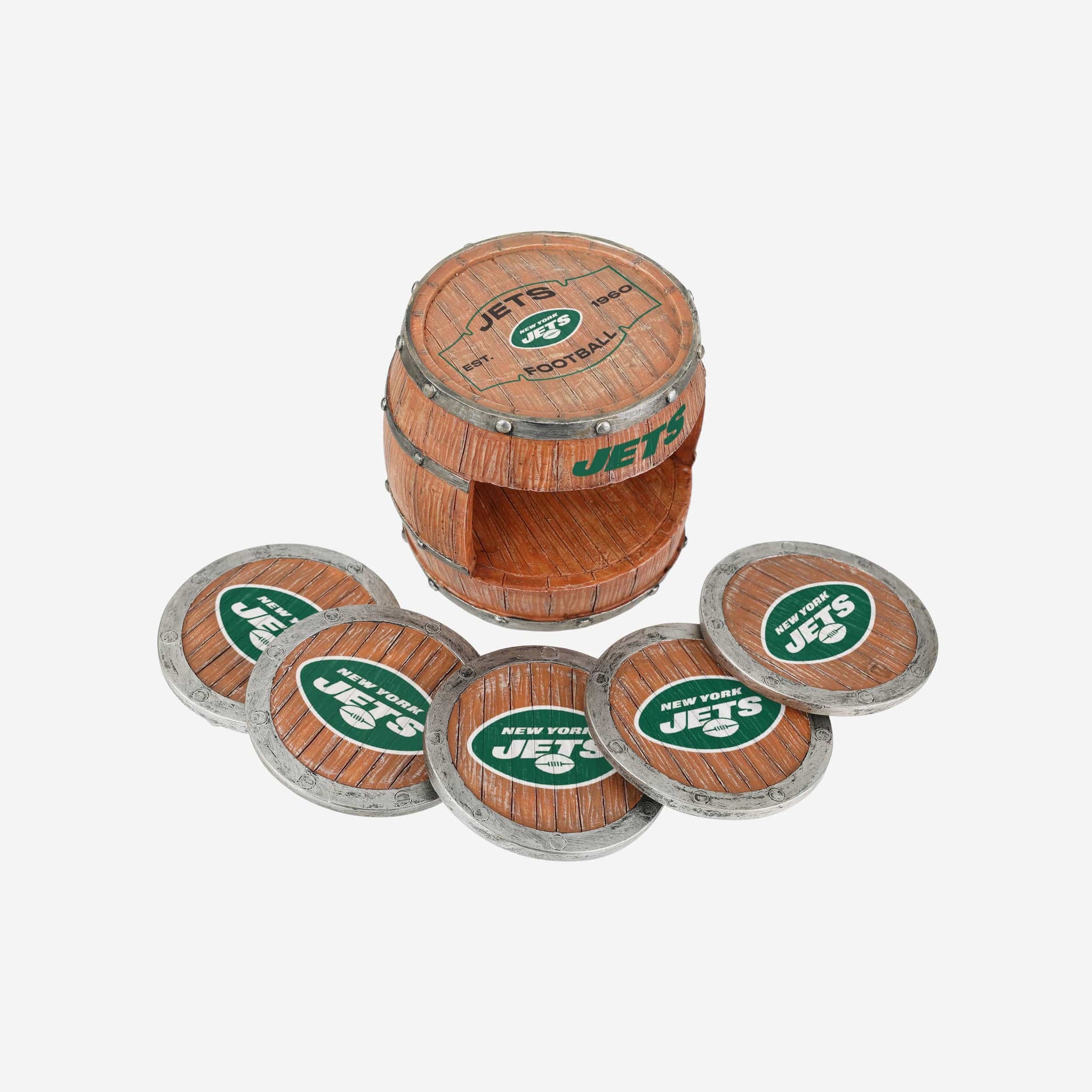 Championship rings? Yay! Unsightly rings on the coffee table? Boo! Break out the beverages worry-free and get ready for every watch party with this New York Jets 5 Pack Barrel Coaster Set.