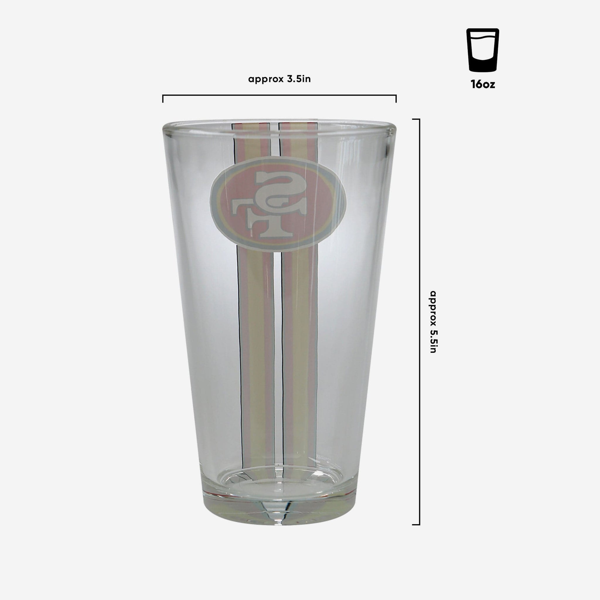 You're a glass half full type of fan. So are we. Now, let's raise that glass and get ready for victory after victory with this San Francisco 49ers Team Stripe Pint Glass.