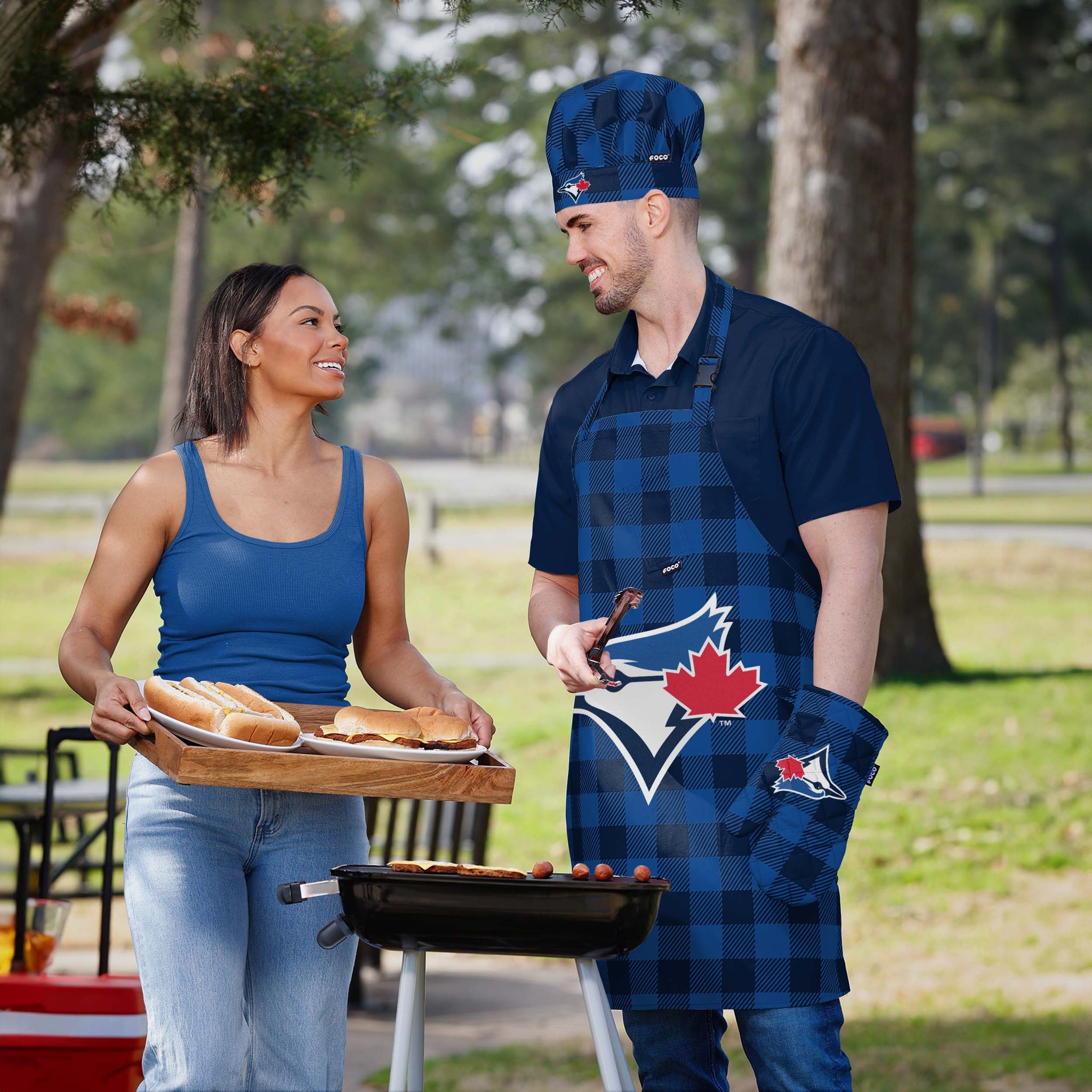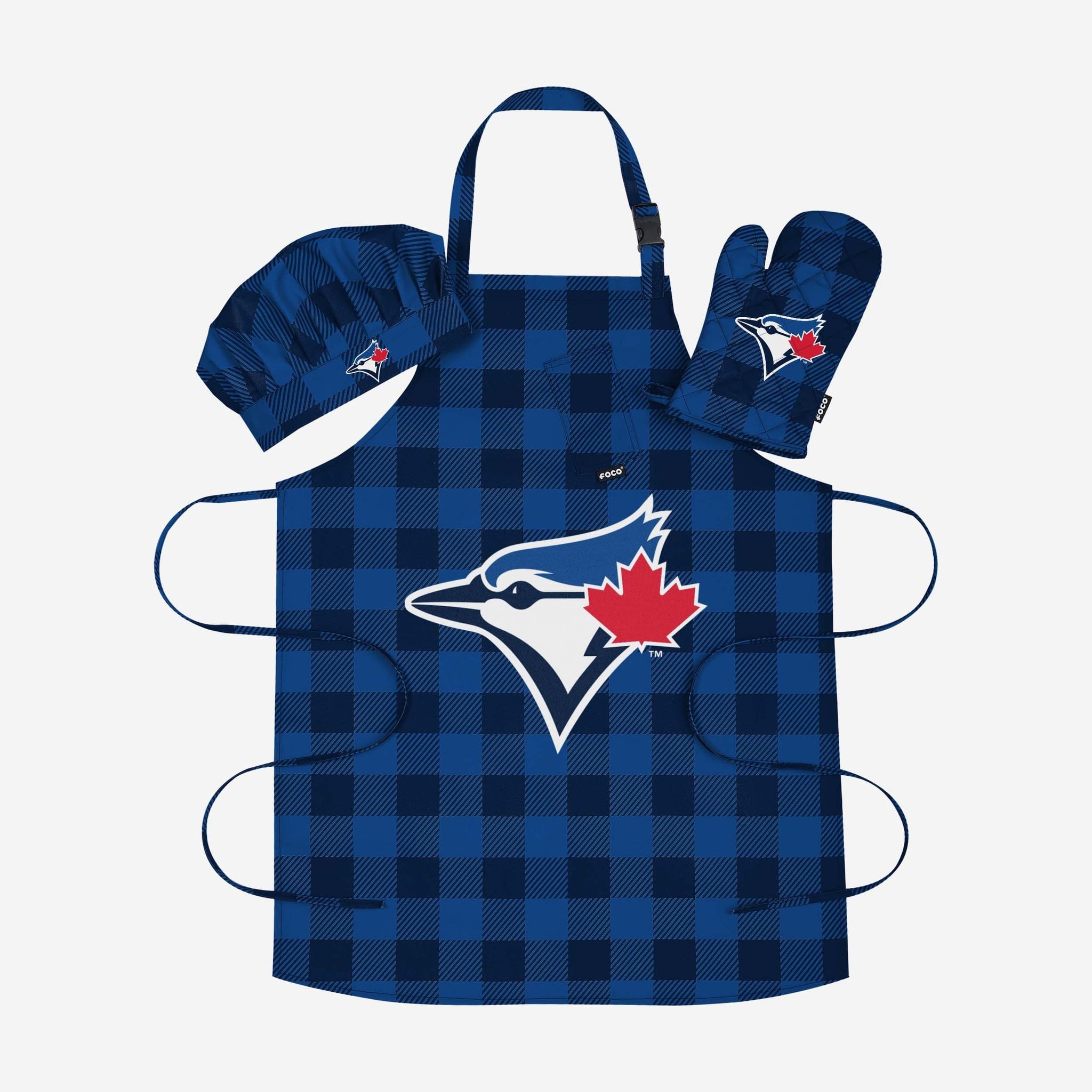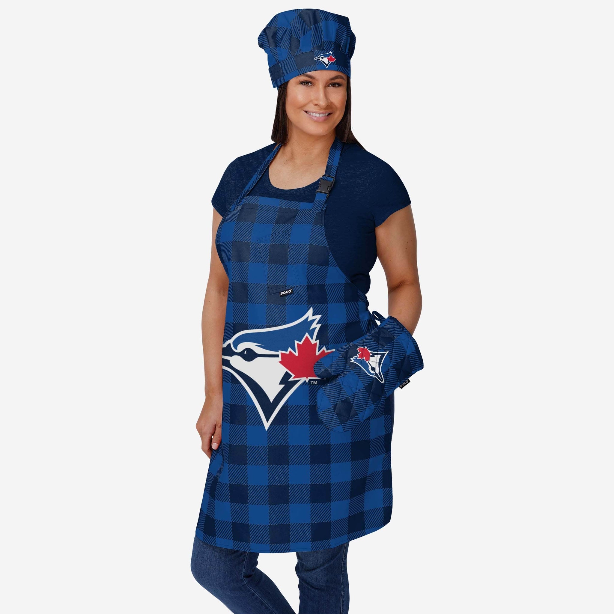 Get ready to serve up the best food in the greatest fan fit. From the kitchen, to the table, to game day, do it all in style with the Toronto Blue Jays Plaid Chef Set.