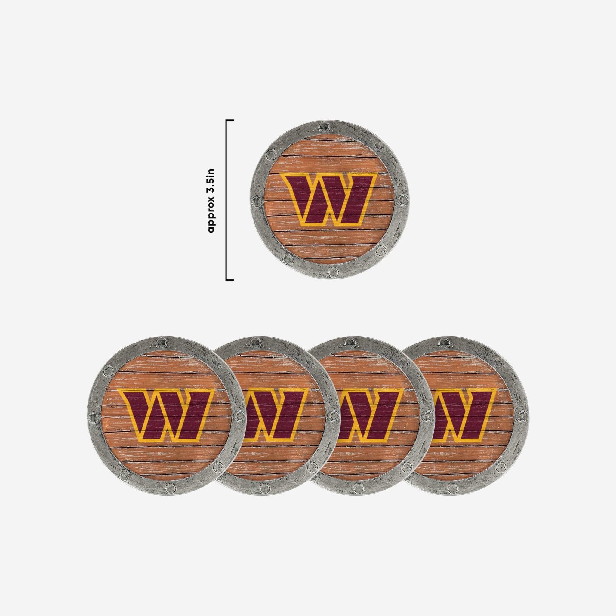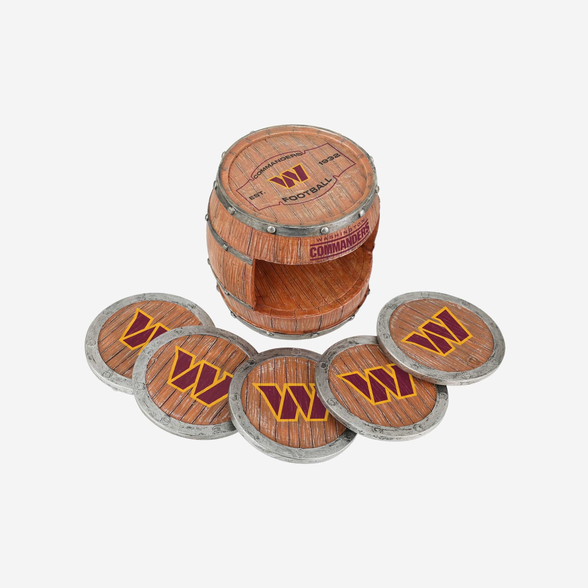 Championship rings? Yay! Unsightly rings on the coffee table? Boo! Break out the beverages worry-free and get ready for every watch party with this Washington Commanders 5 Pack Barrel Coaster Set.