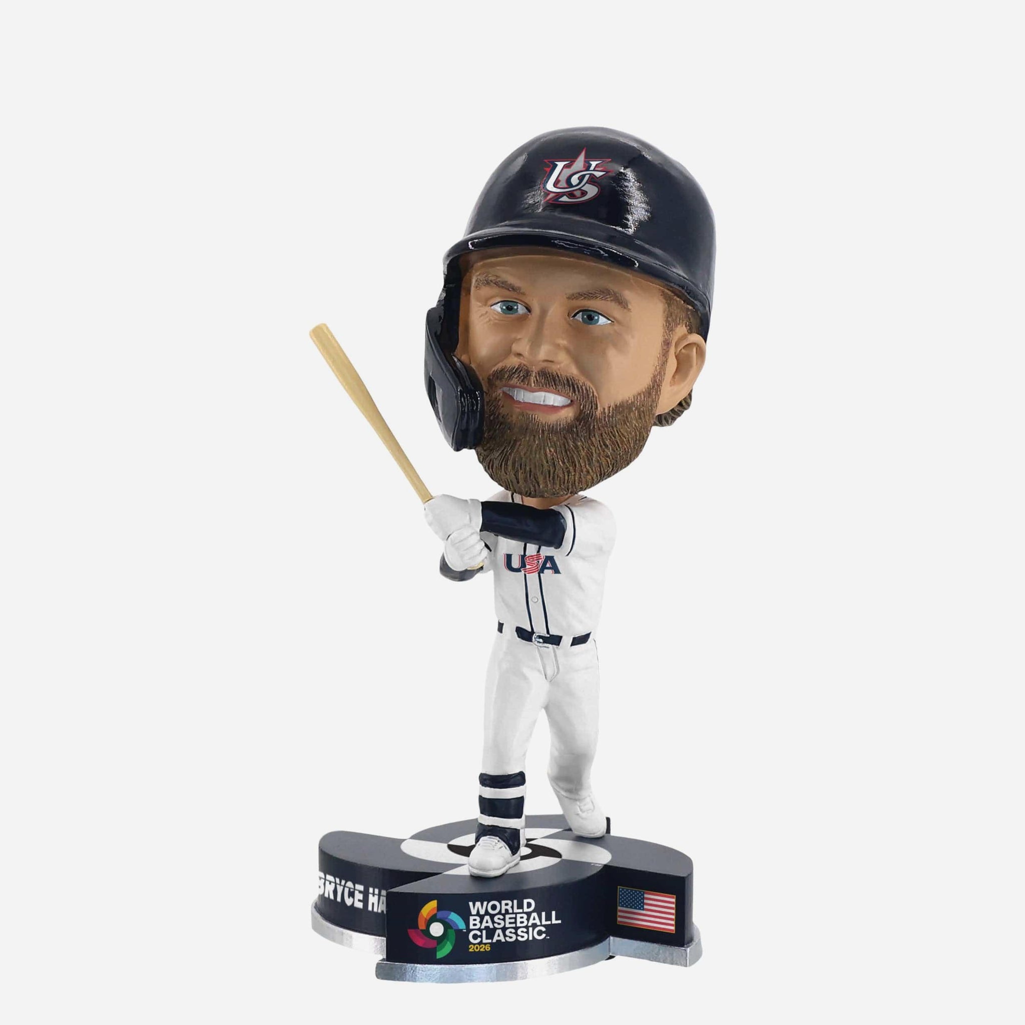 Bring the heat of international competition to your collection with the Bryce Harper USA 2026 World Baseball Classic Team Medium Bighead Bobblehead! Featuring Harper suited up in Team USA's official World Baseball Classic uniform, this bold Bighead design is ready to represent on baseball’s biggest global stage.