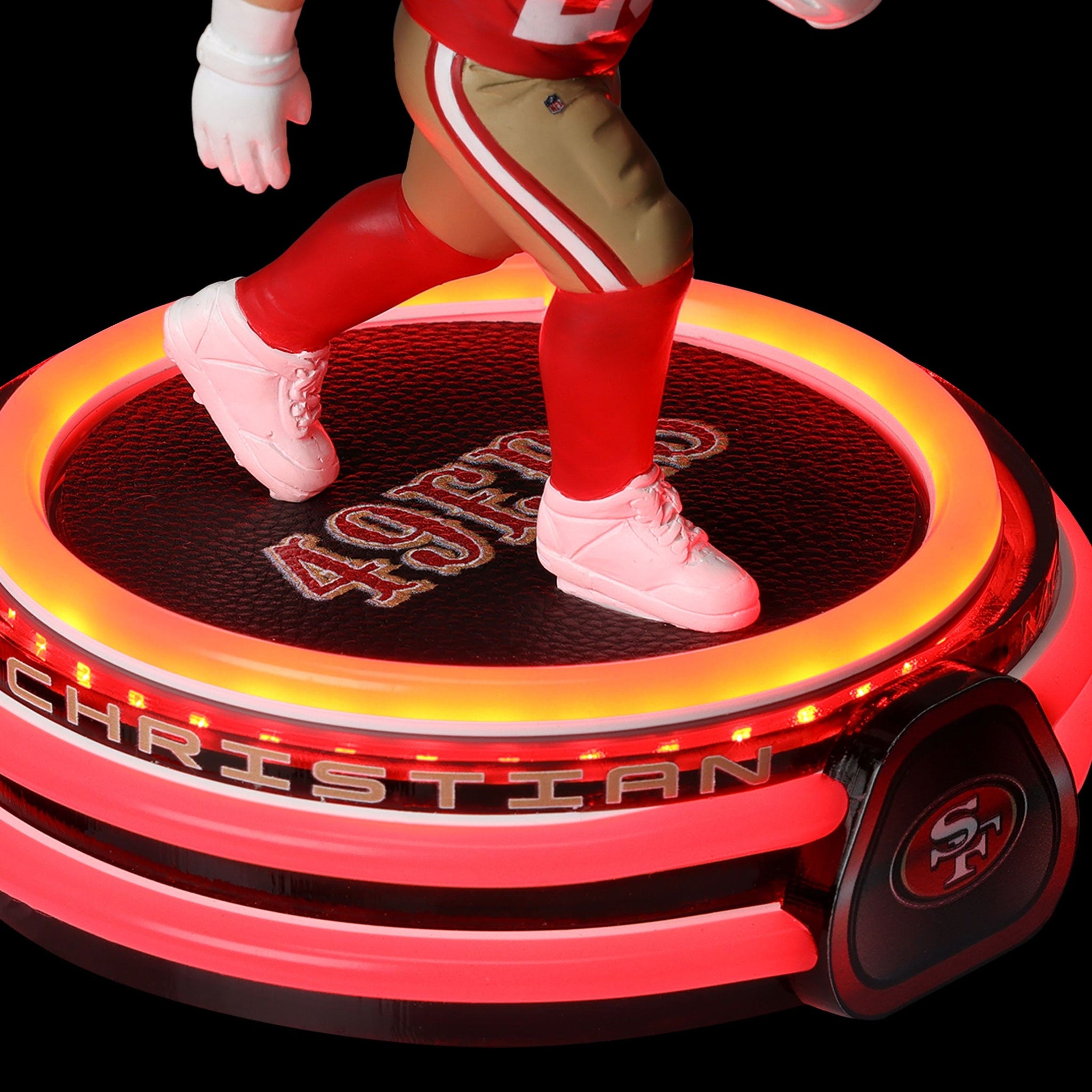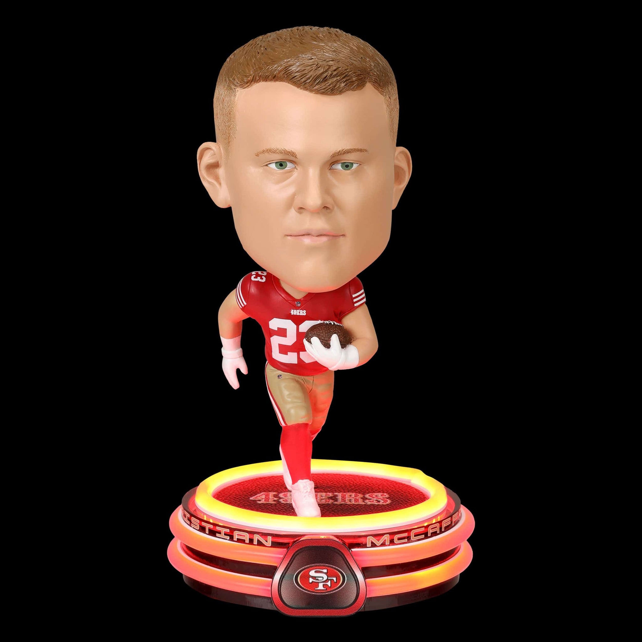CMC puts defenses in the spotlight! Now you can put him in yours with this Christian McCaffrey San Francisco 49ers LED Neon Bighead Bobblehead.
