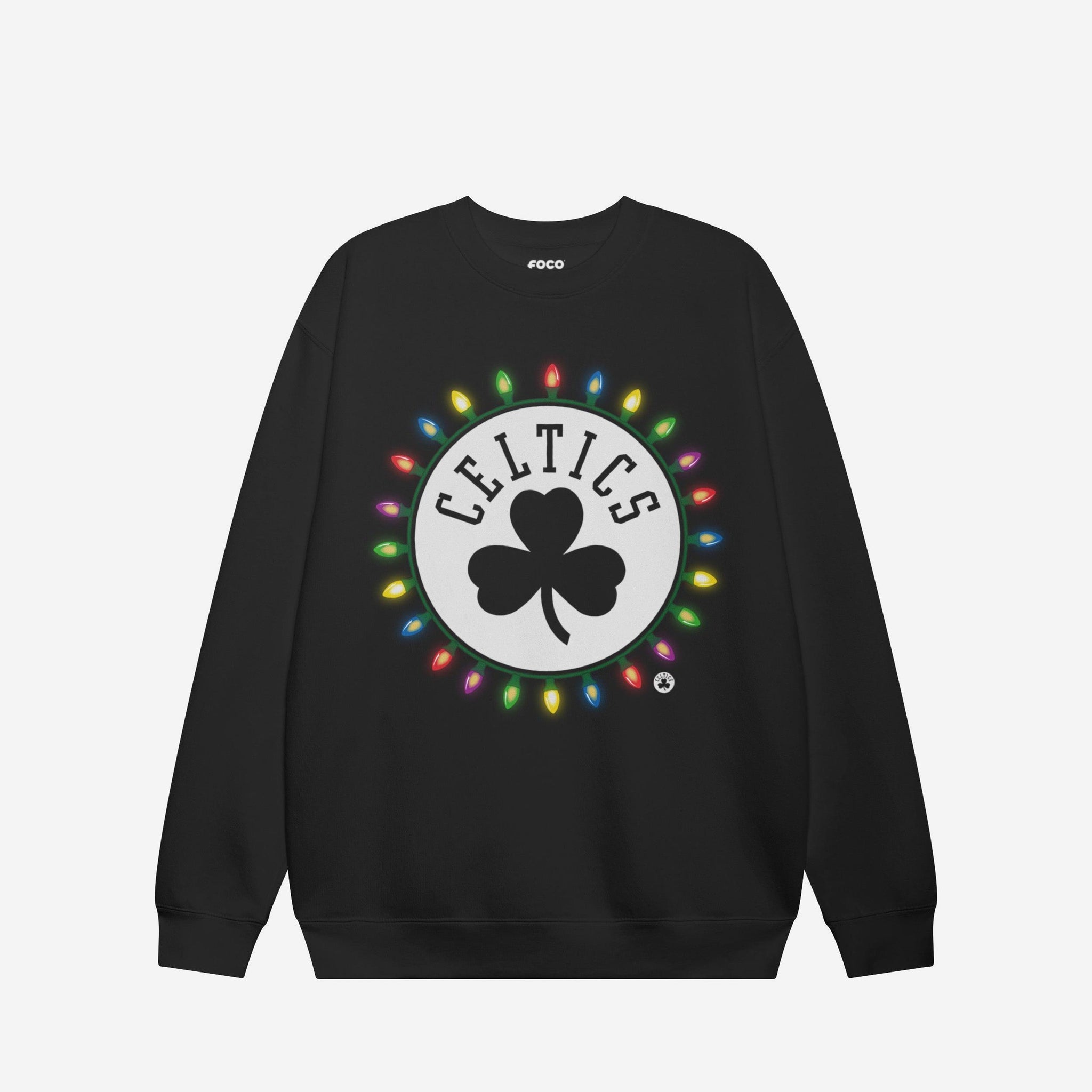 Boston Celtics Primary Logo Holiday Lights Crew Neck Sweatshirt FOCO S - FOCO.com