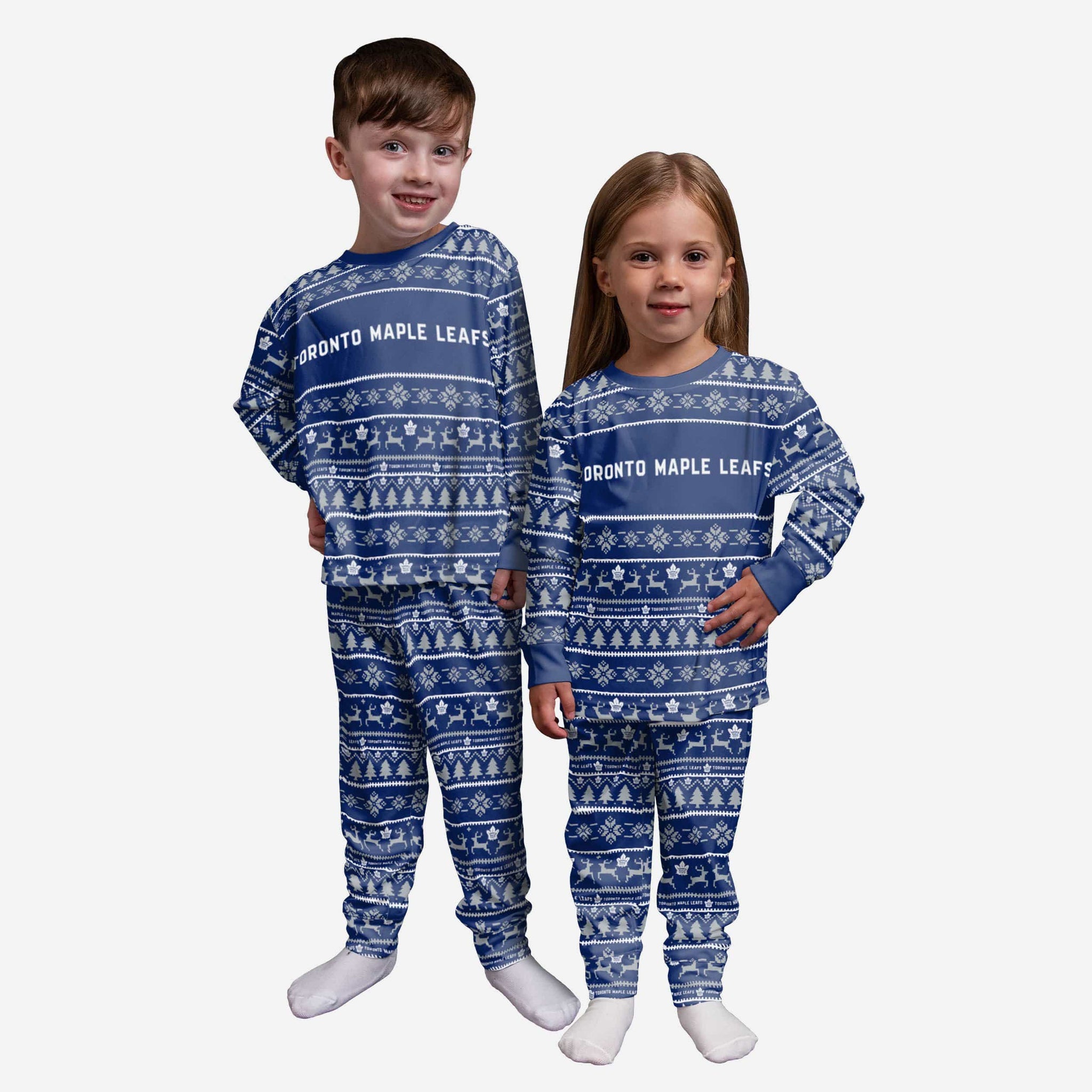 Get some matching family pajamas to turn your good night's sleep into a great night's sleep. You won't want to miss these kids' team pajamas. These youth PJ's are comfortable and show off your team spirit in the form of some sweet youth jammies. Introducing Toronto Maple Leafs Toddler Family Holiday Pajamas. Don't forget to take your holiday photo with the family wearing matching Christmas pajamas.