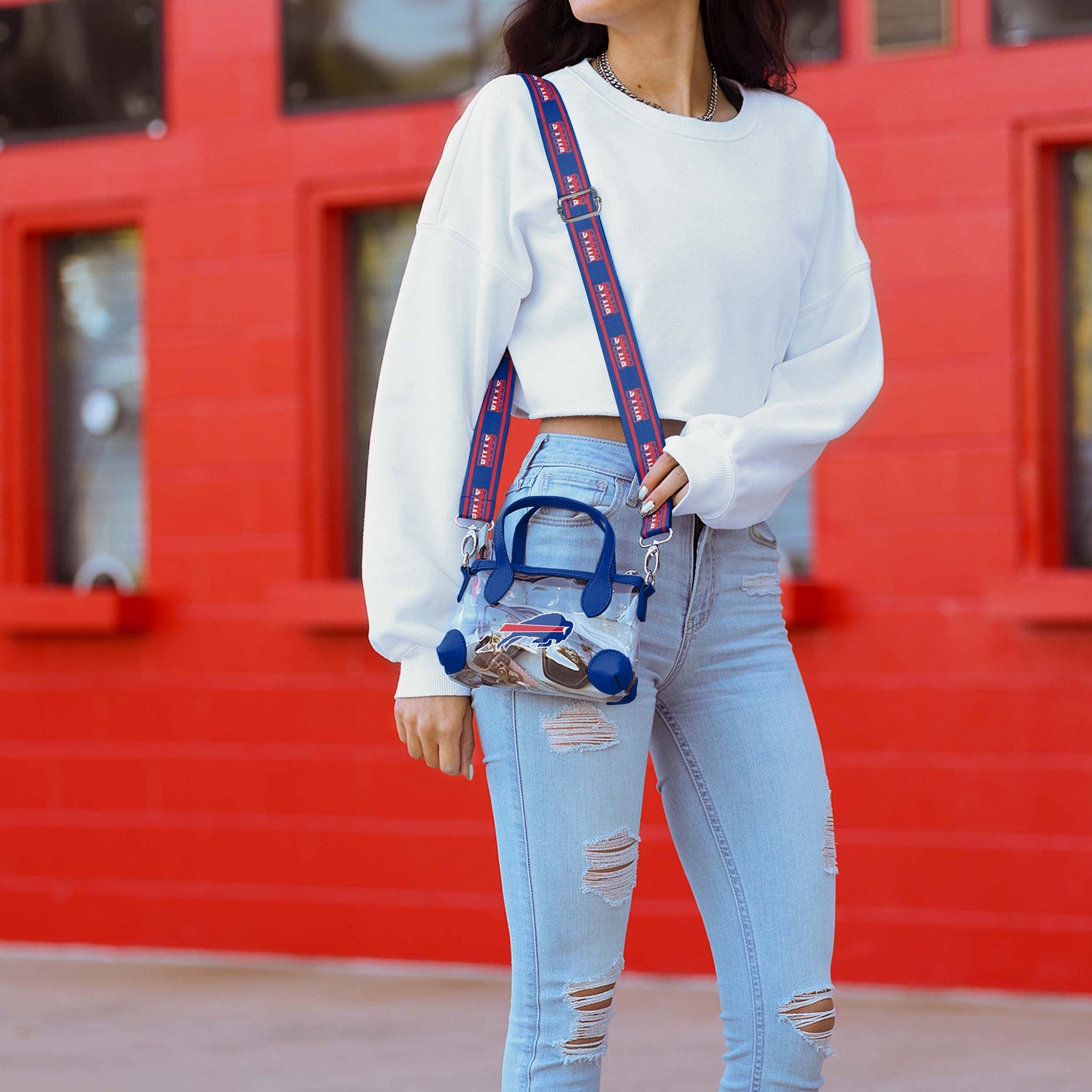 It's clear to see. Whether you've got it slung across your shoulder or held in your hands, this Buffalo Bills Big Logo Clear Crossbody Mini Purse is the perfect accessory for displaying your fandom and keeping your stuff secure at the game.