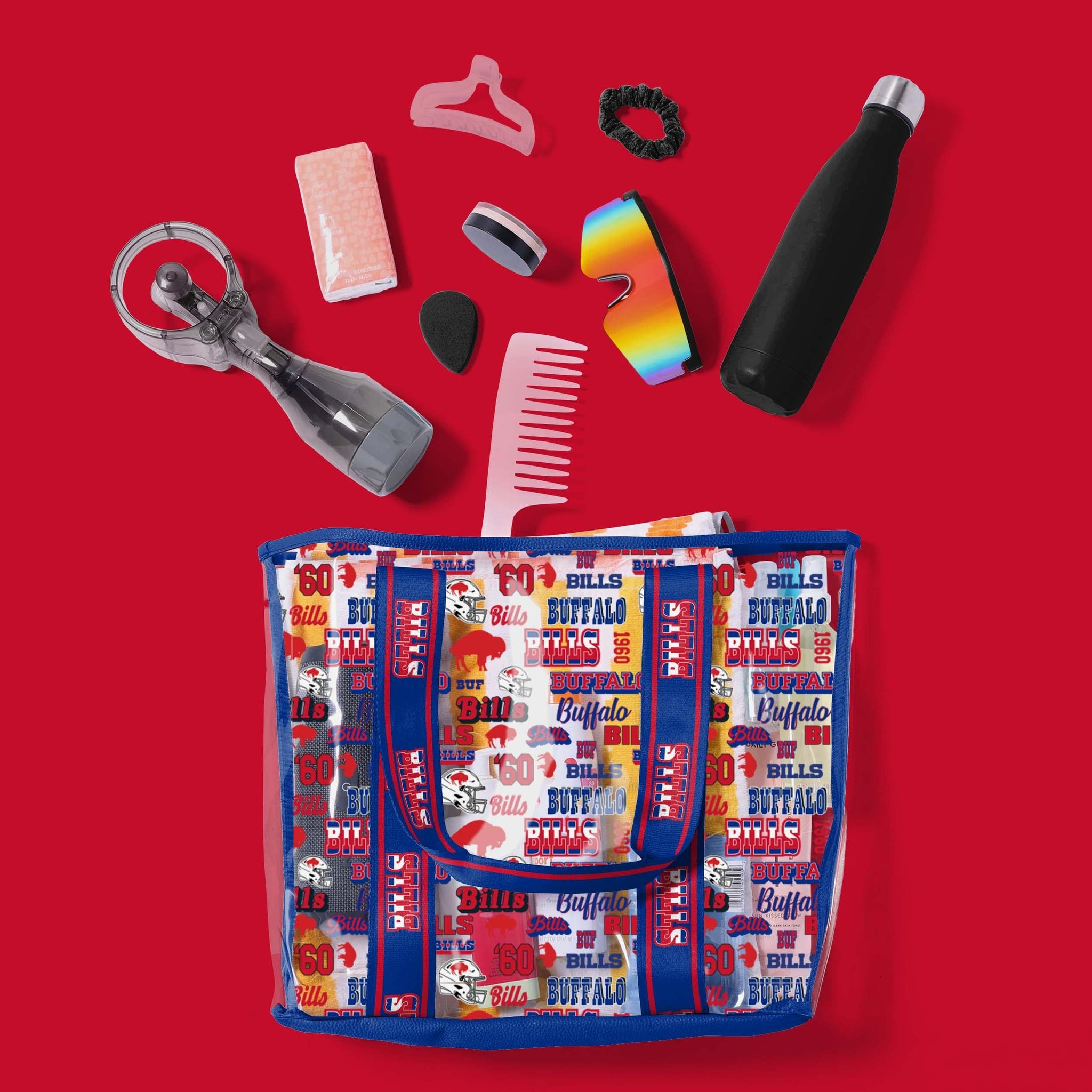 You've got it in the bag. The tote bag, that is! When you take this Buffalo Bills Repeat Retro Print Clear Tote Bag with you while running errands or to the game, your fandom will clearly be on display all year long.