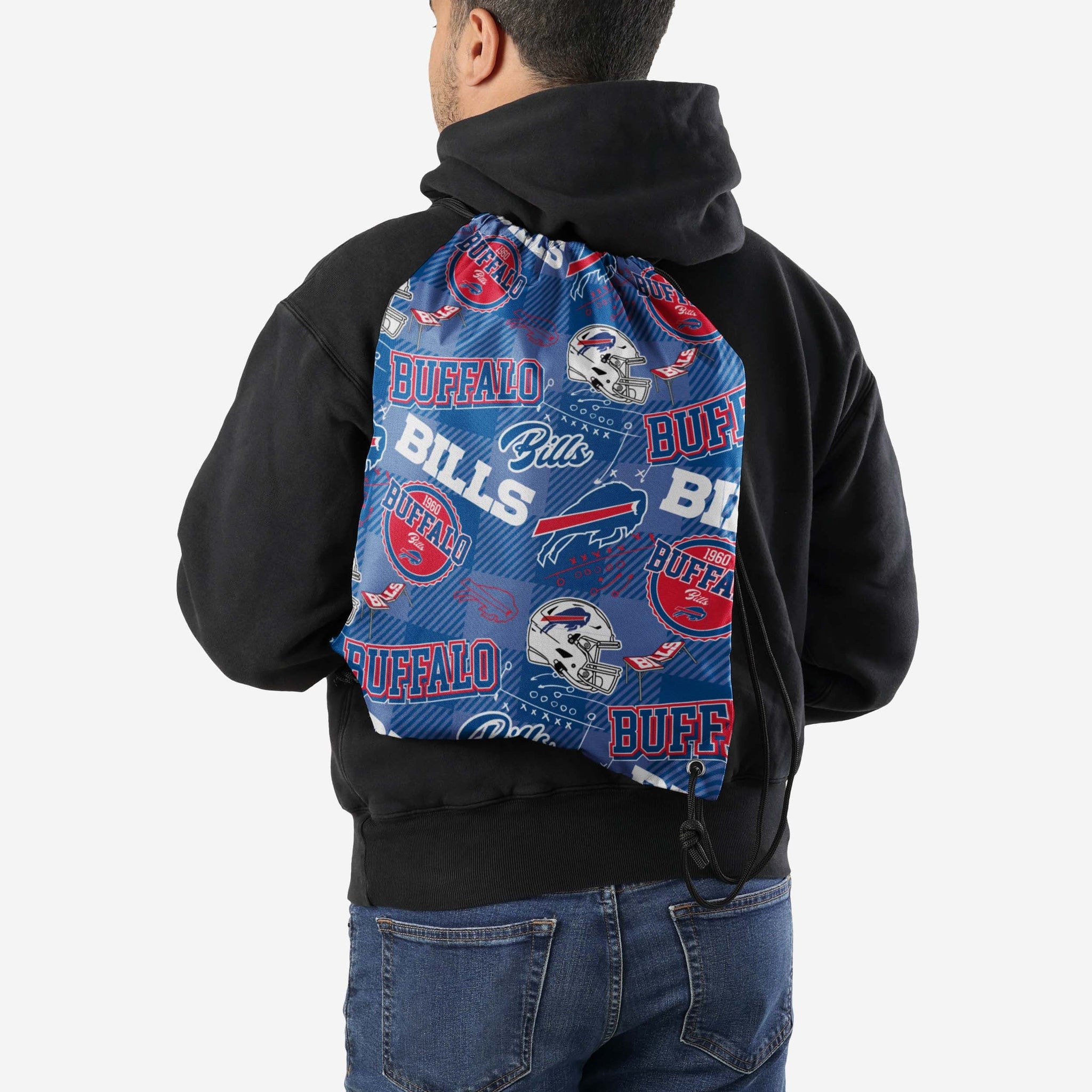 Step one: Pack up all your team spirit. Step two: Take it on the go. Step three: Repeat the first two steps for any adventure you go on with this Buffalo Bills Thematic Repeat Print Drawstring Backpack.