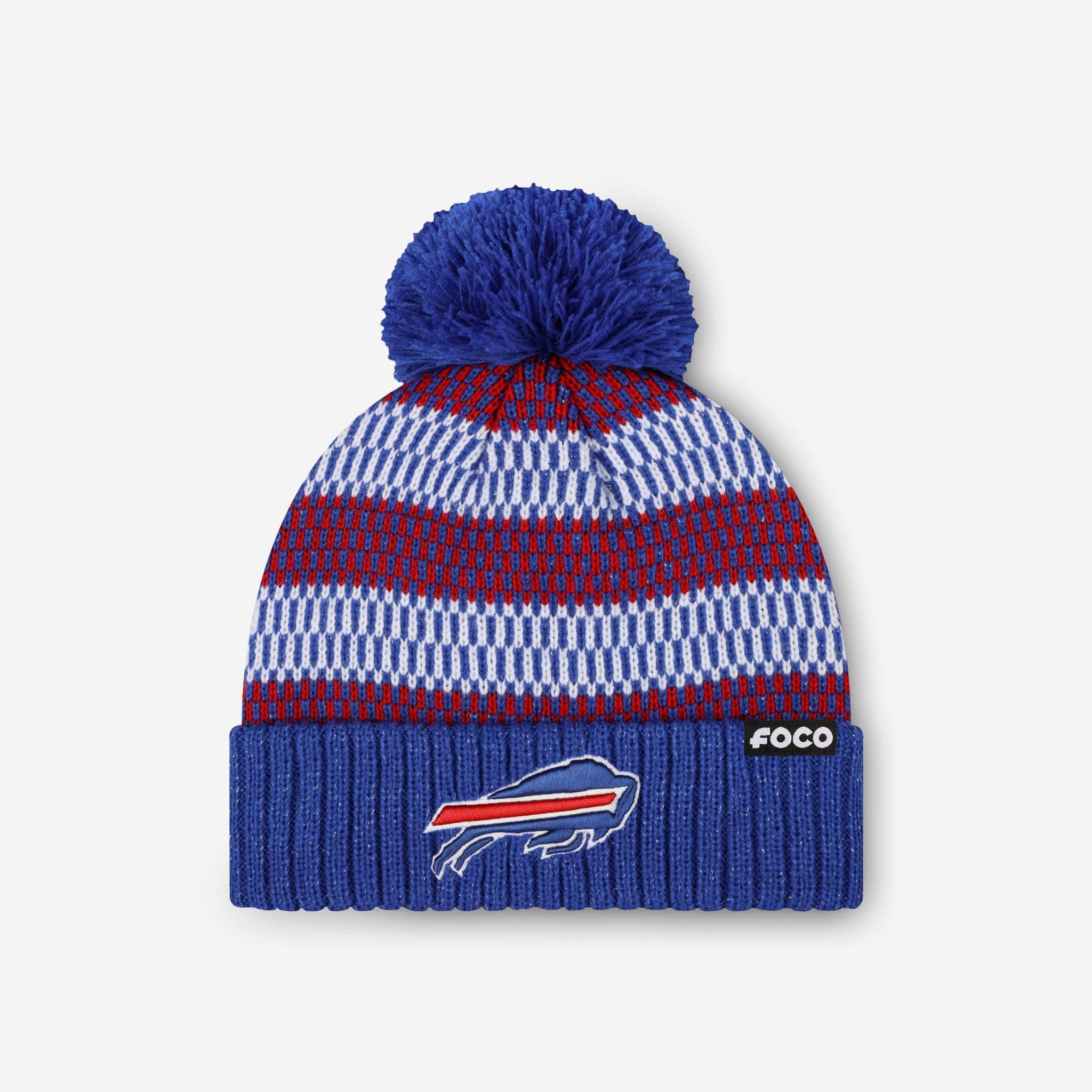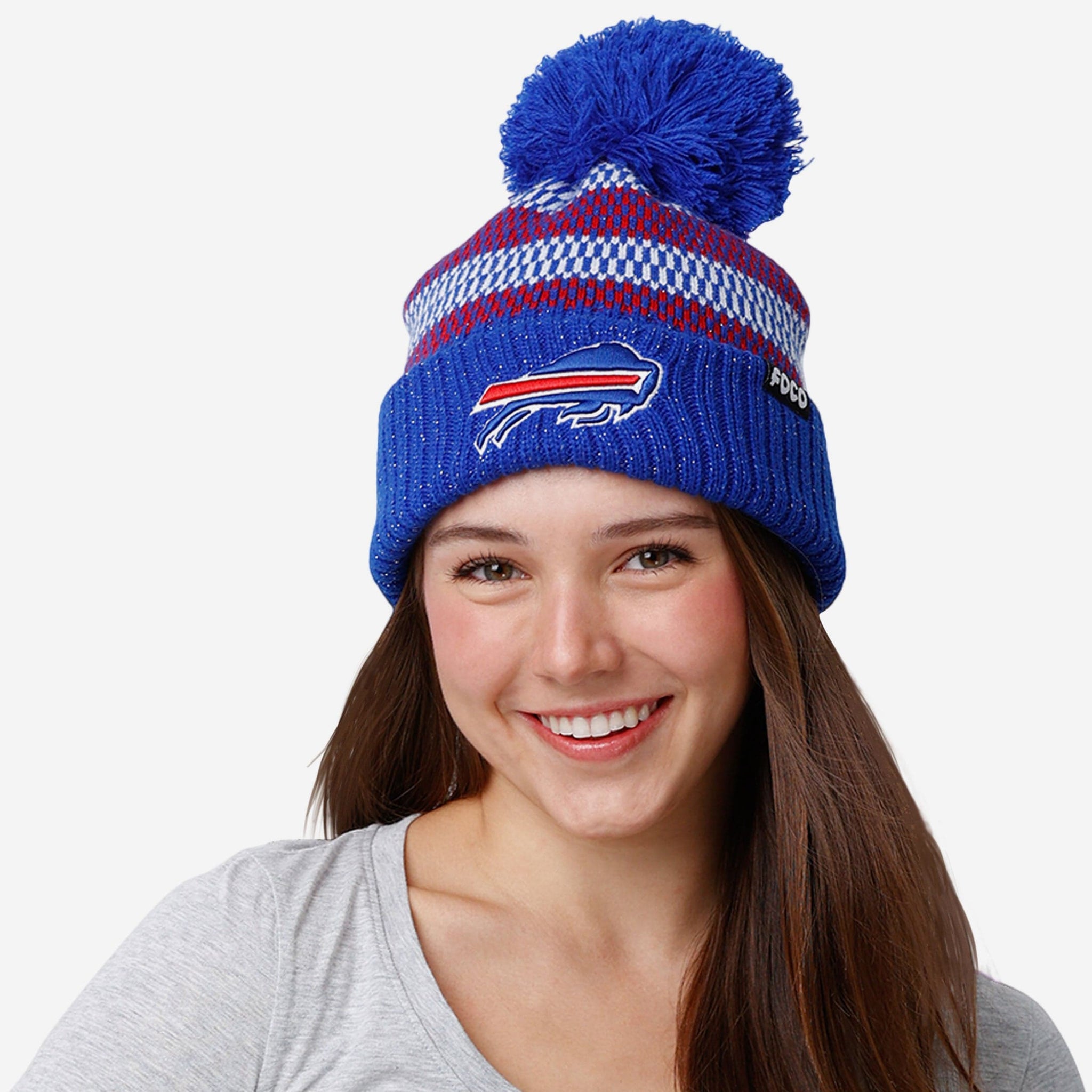 Buffalo Bills Womens Cozy Knit Metallic Thread Pom Beanie FOCO - FOCO.com