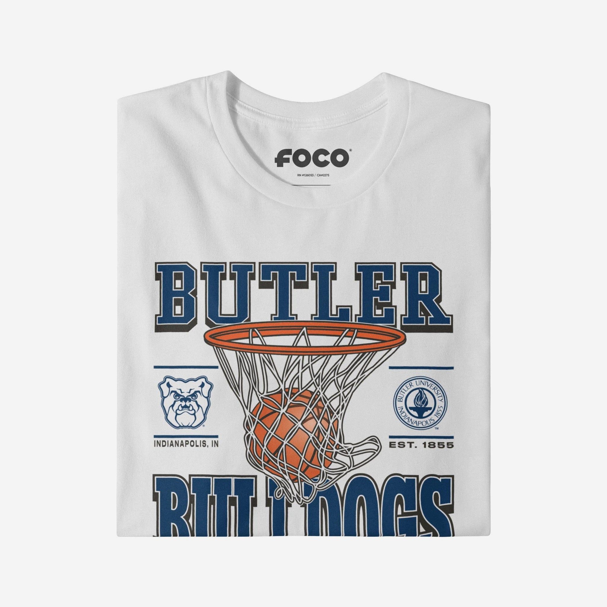 This top features a design that showcases your all-important team colors, a team logo display, a team wordmark name display, year of team establishment, and a basketball swishing through a net display meaning this t-shirt will prove your unmatched dedication to the Butler Bulldogs when you're at the game or watching at home. In other words, this graphic tee is about to be your new favorite teammate.