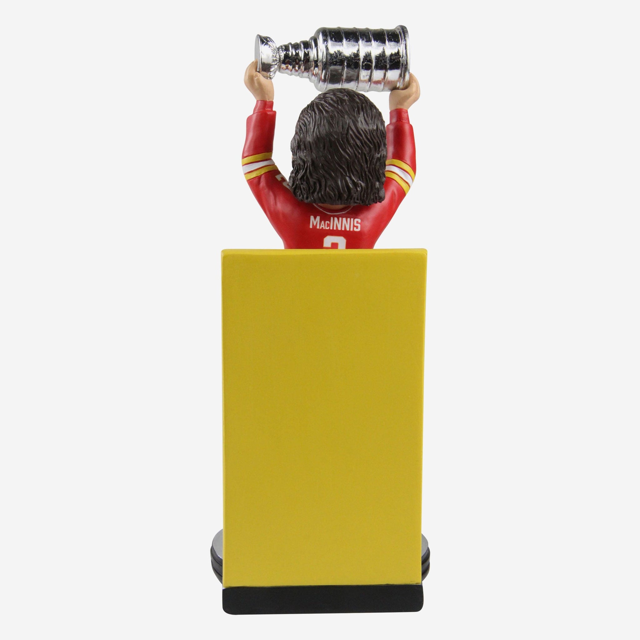 - Portrays MacInnis wearing his red gameday uniform and championship cap while lifting the Stanley Cup trophy, because no championship celebration is complete without a little hardware