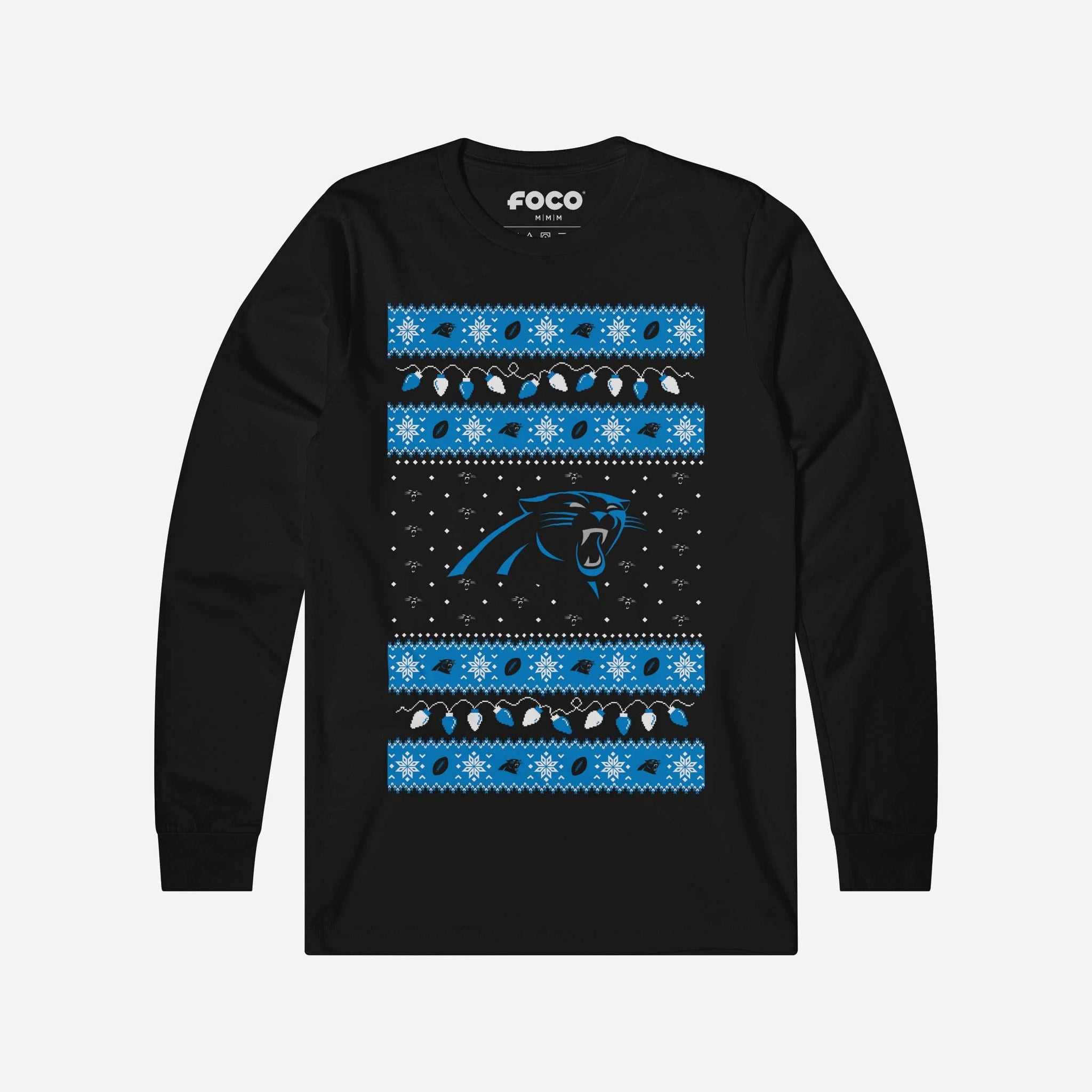 Carolina Panthers Holiday Lights Sweater Long Sleeve T-Shirt FOCO S - FOCO.com