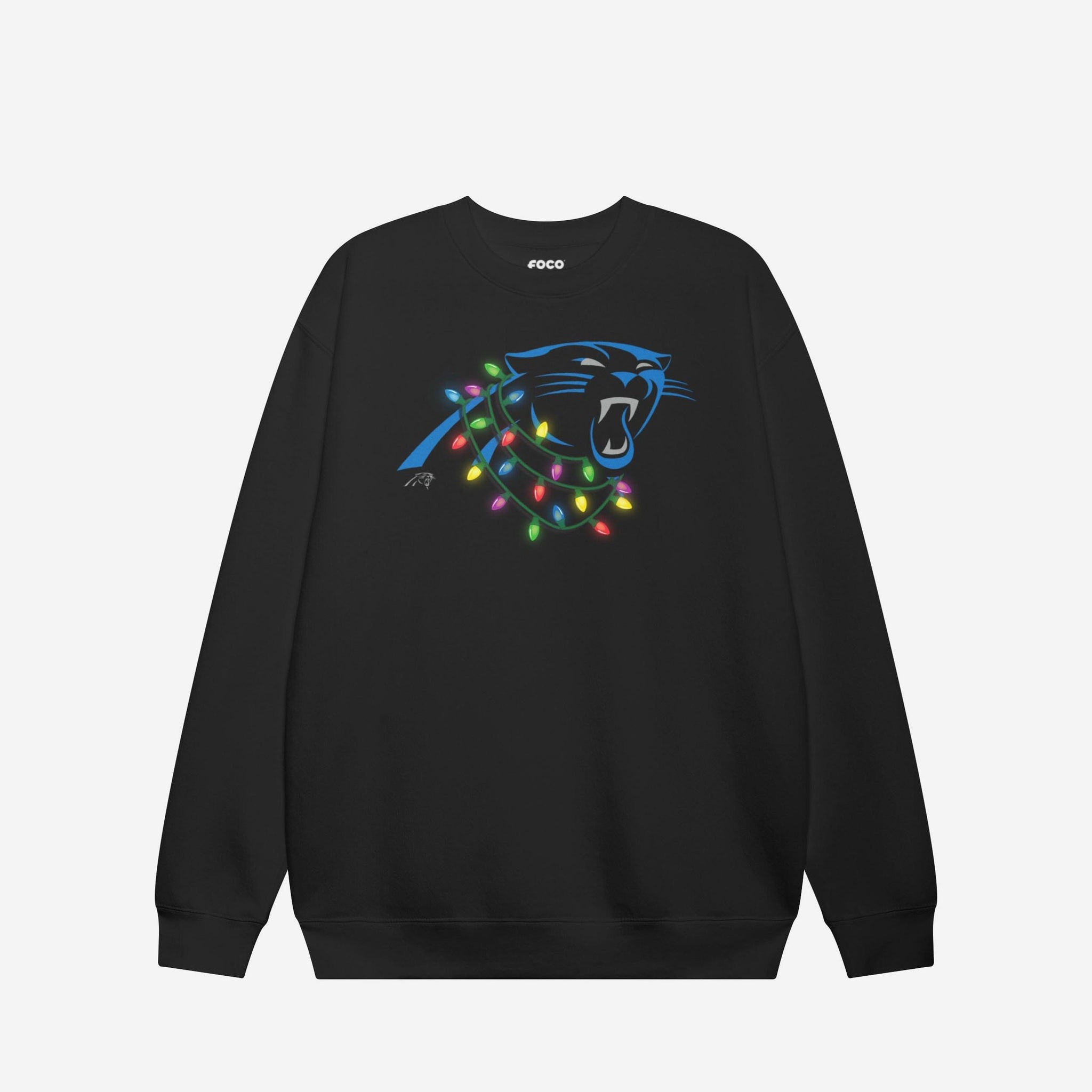 Carolina Panthers Primary Logo Holiday Lights Crew Neck Sweatshirt FOCO S - FOCO.com