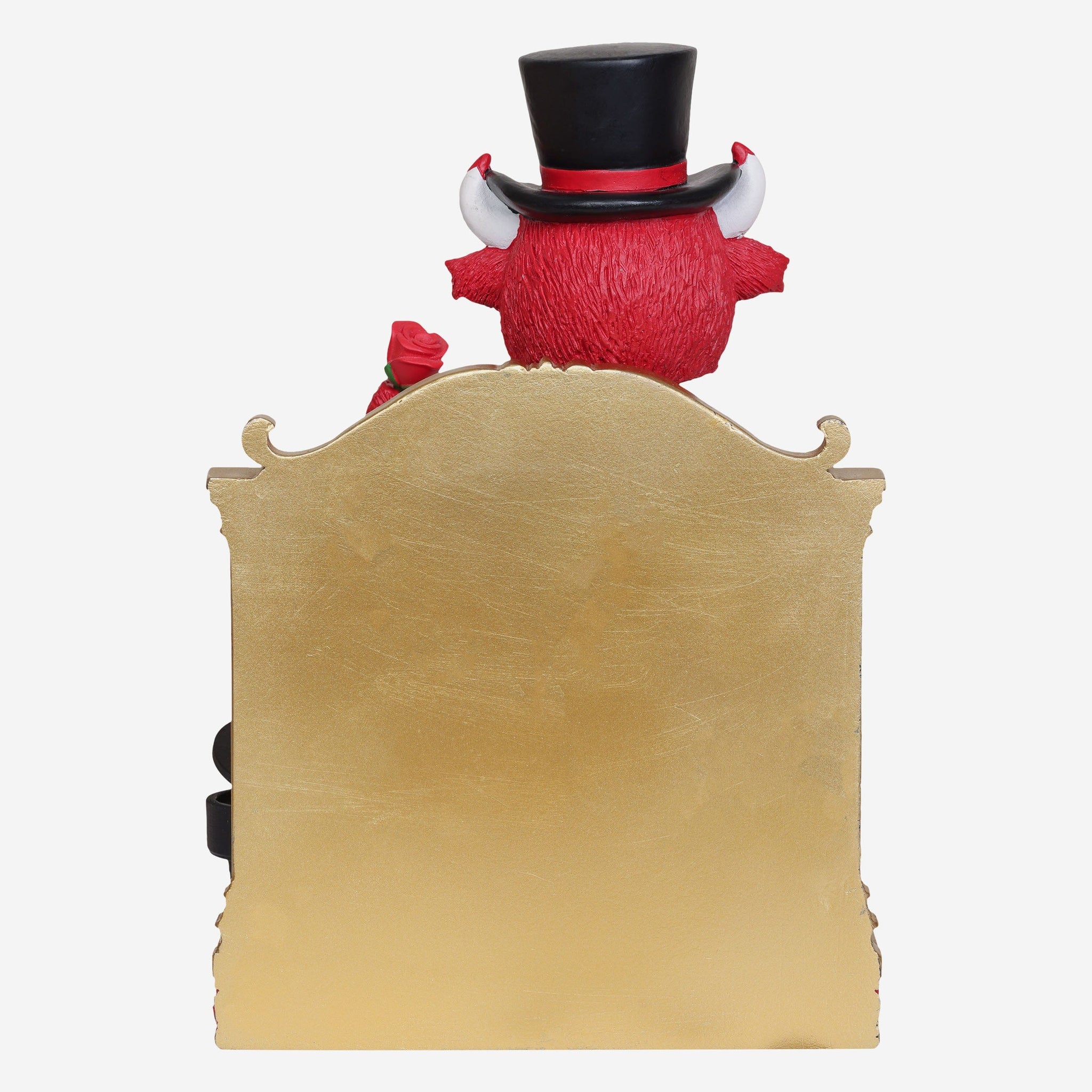 - Portrays mascot wearing his gameday uniform, top hat, half-face mask, and team-colored cape while holding a rose, ready to bring some spooky fun to your fancave