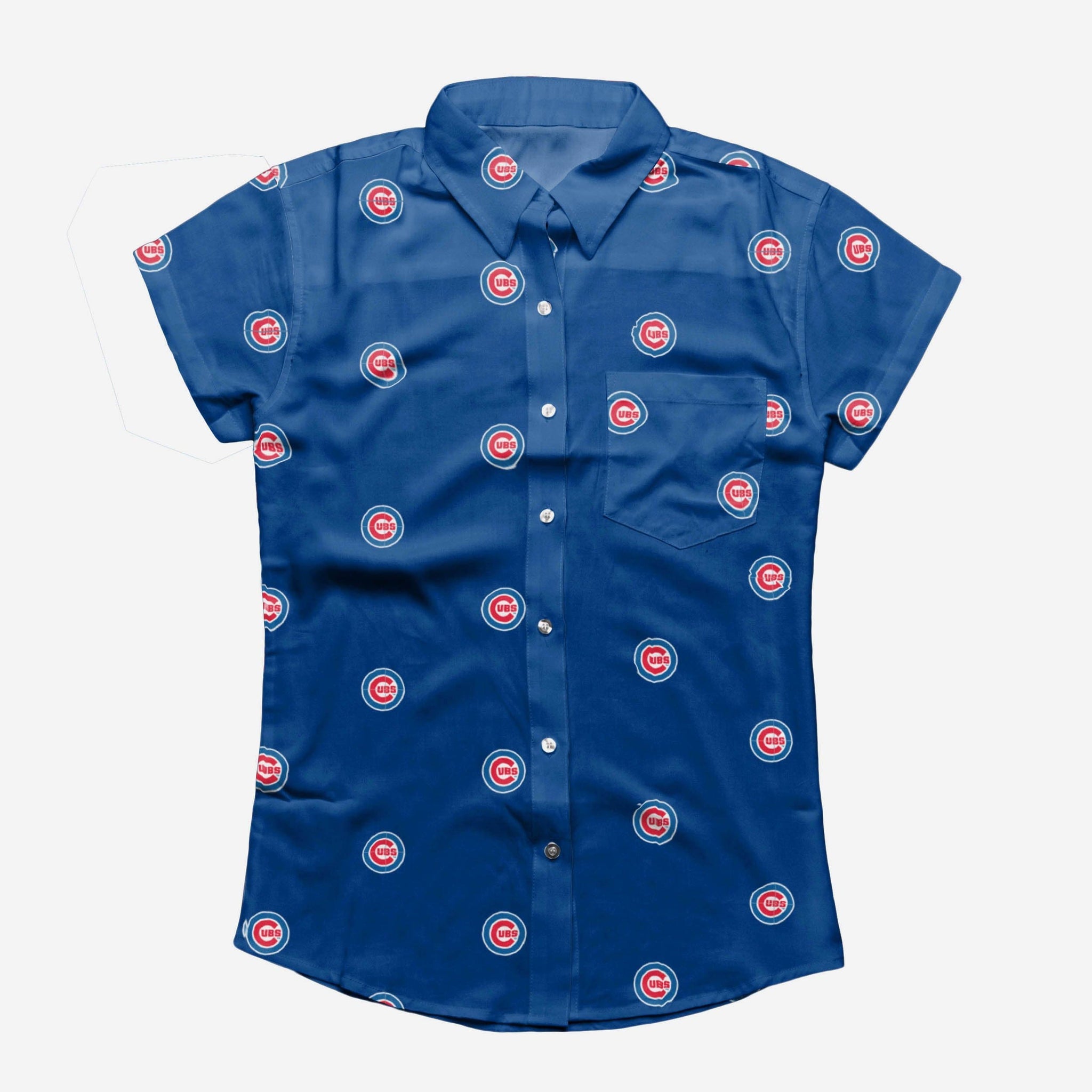Chicago Cubs Logo Blast Womens Button Up Shirt FOCO S - FOCO.com