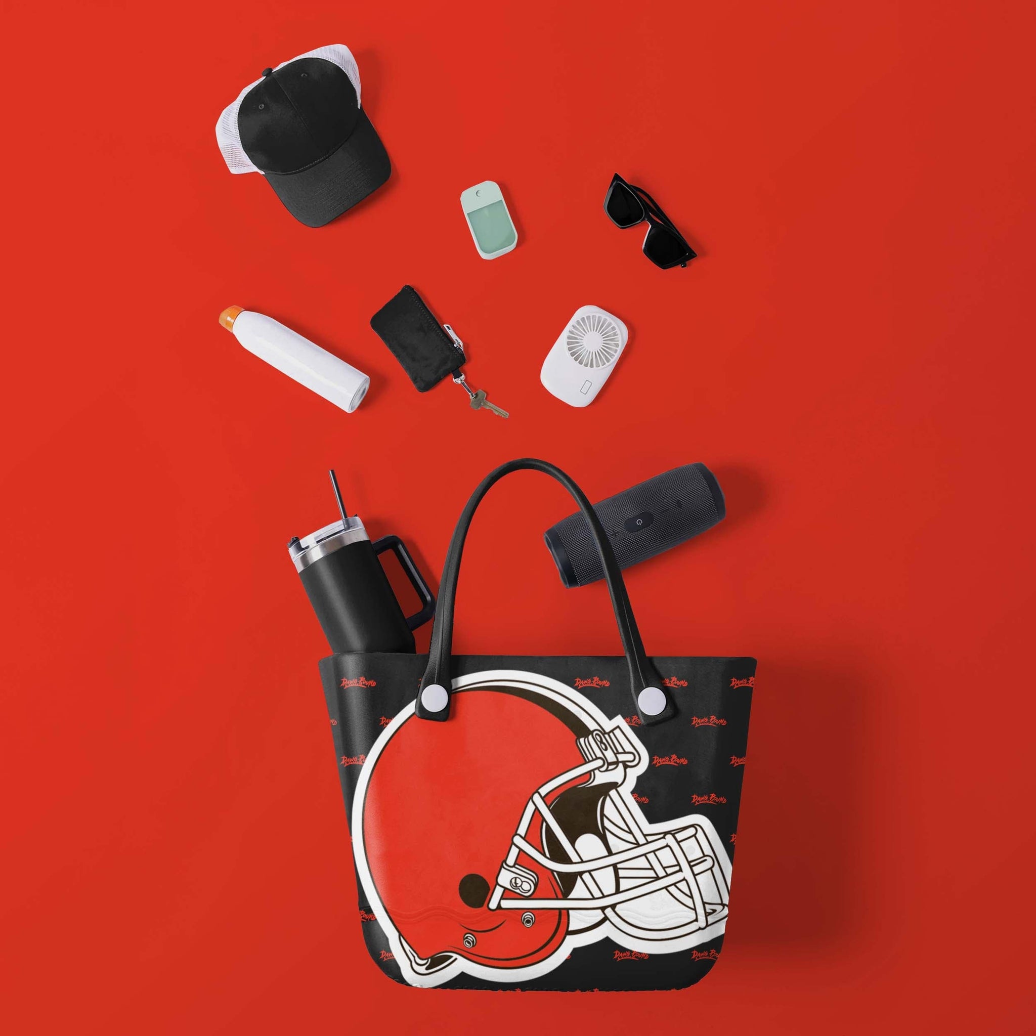 Looking for a bag as durable and dependable as your team spirit? You've found it. Whether you're running the tailgate, hitting the beach, or going on any adventure, pack up your fandom and take it on the go with this Cleveland Browns Big Logo Mini Print Tailgate Tote Bag.