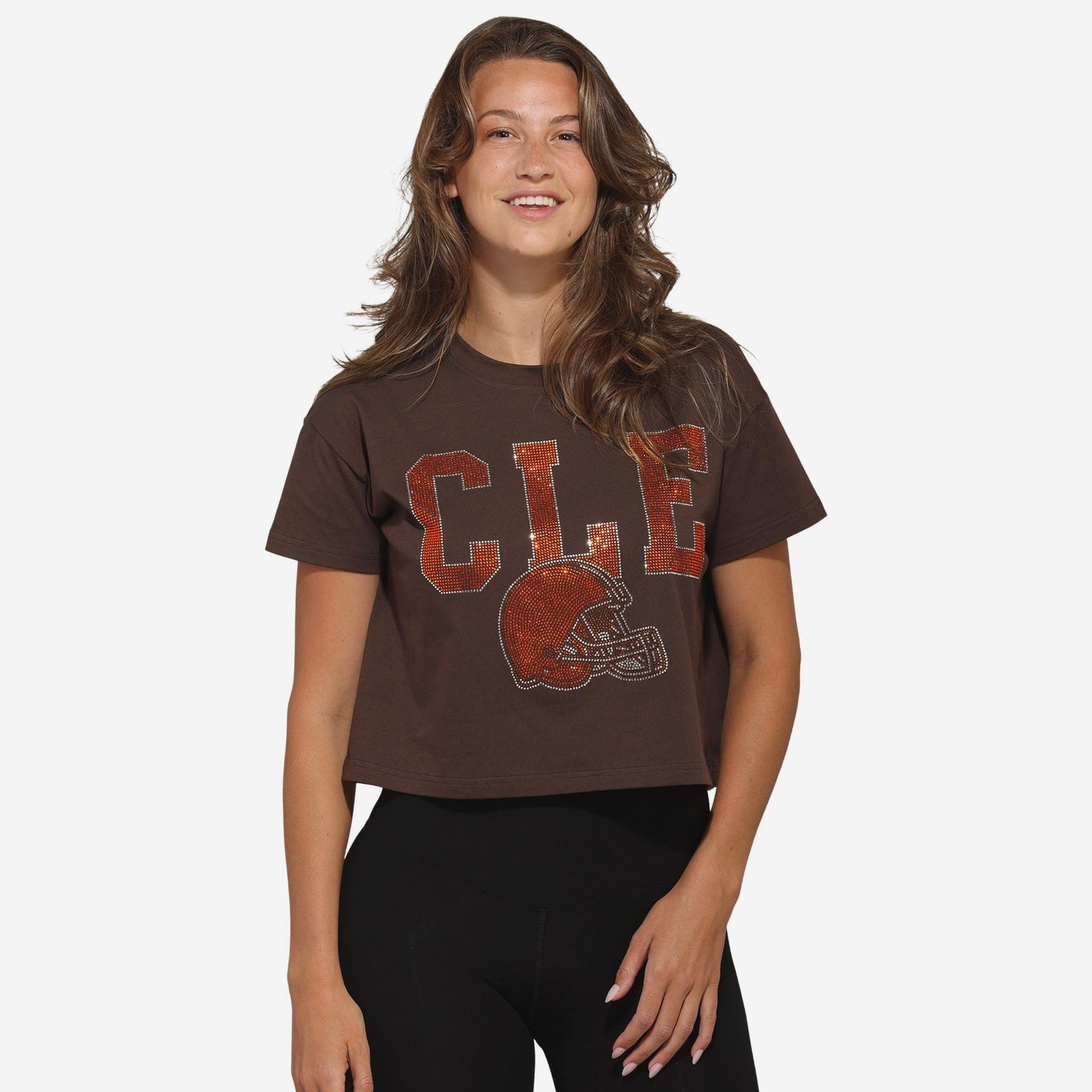Victory looks good on you, and so will this Cleveland Browns Womens Rhinestone Logo Crop Top. With its flattering cropped fit and dazzling team pride, this top is your go-to for standing out in the crowd and showing up for your squad in style.