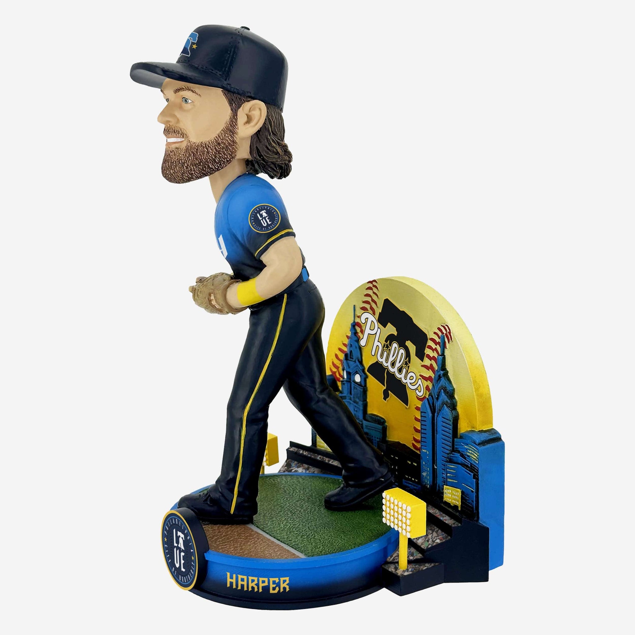 - Portrays Harper wearing the Phillies’ blue alternate gameday uniform in an action pose, ready to rep Philly with every stitch