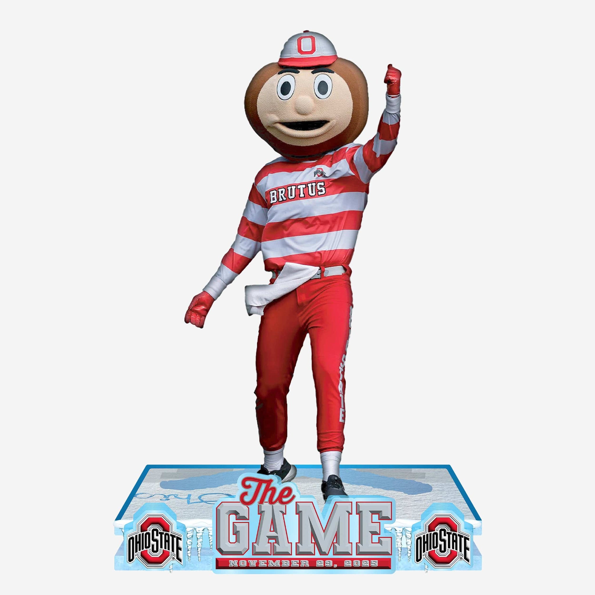 - Portrays Brutus in his classic scarlet and gray gear throwing down a triumphant celebration, ready to spark a snowstorm of Buckeye pride