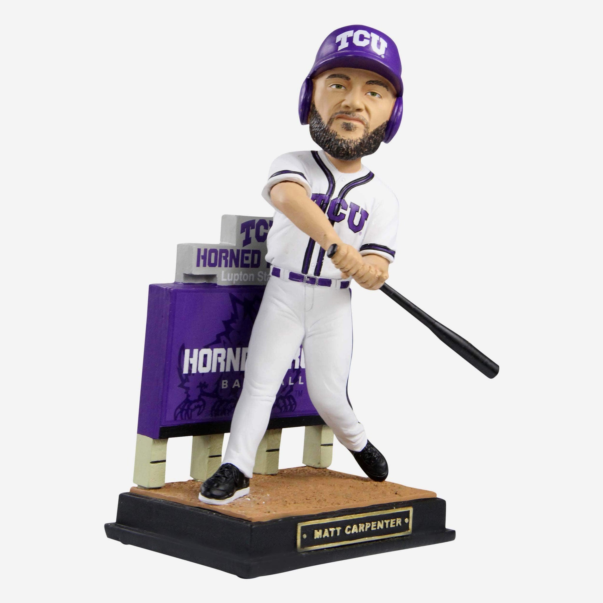 Before he was selling out stadiums in the bigs, he was building his legacy as a king of the campus diamond. Immortalize his epic college career by adding this Matt Carpenter TCU Horned Frogs Gates Series Bobblehead to your roster.