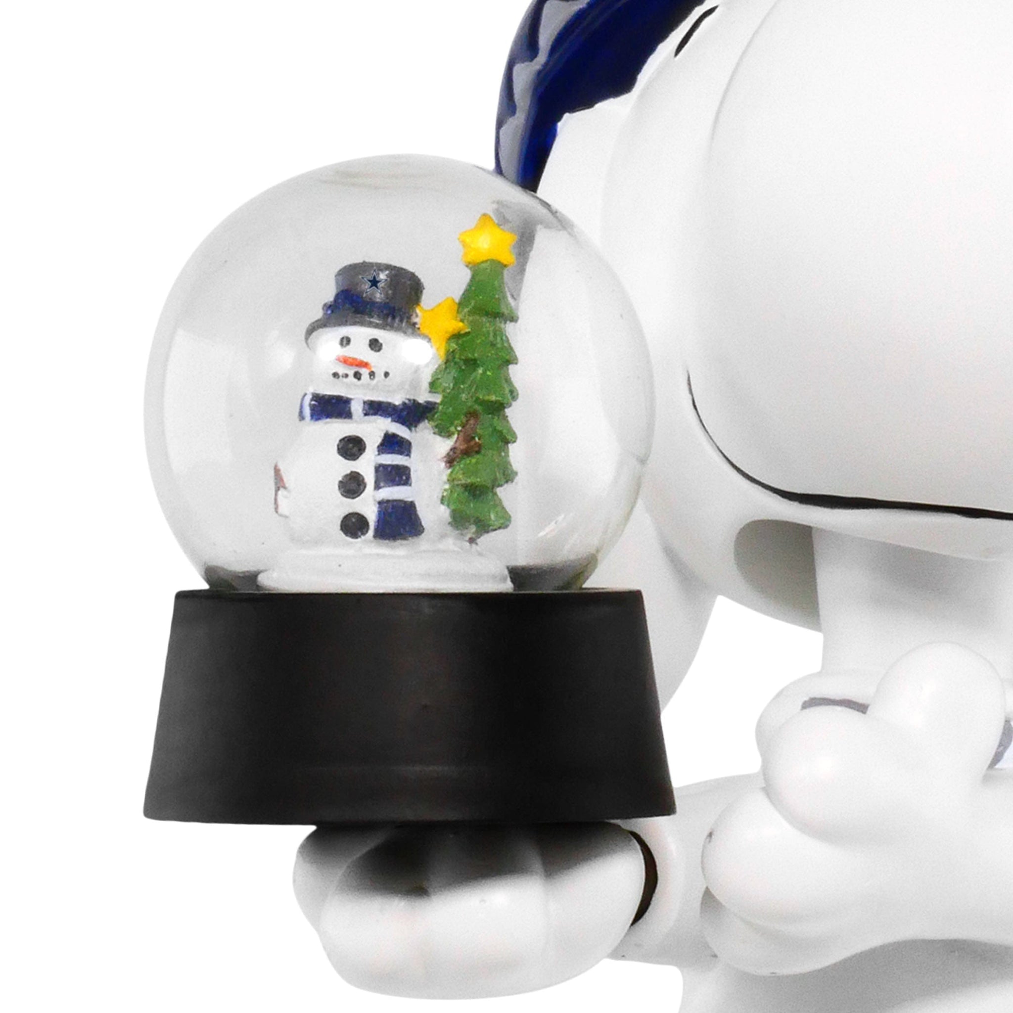 • Portrays Snoopy holding a snowglobe, bundled up in cozy winter gear for a festive seasonal look
