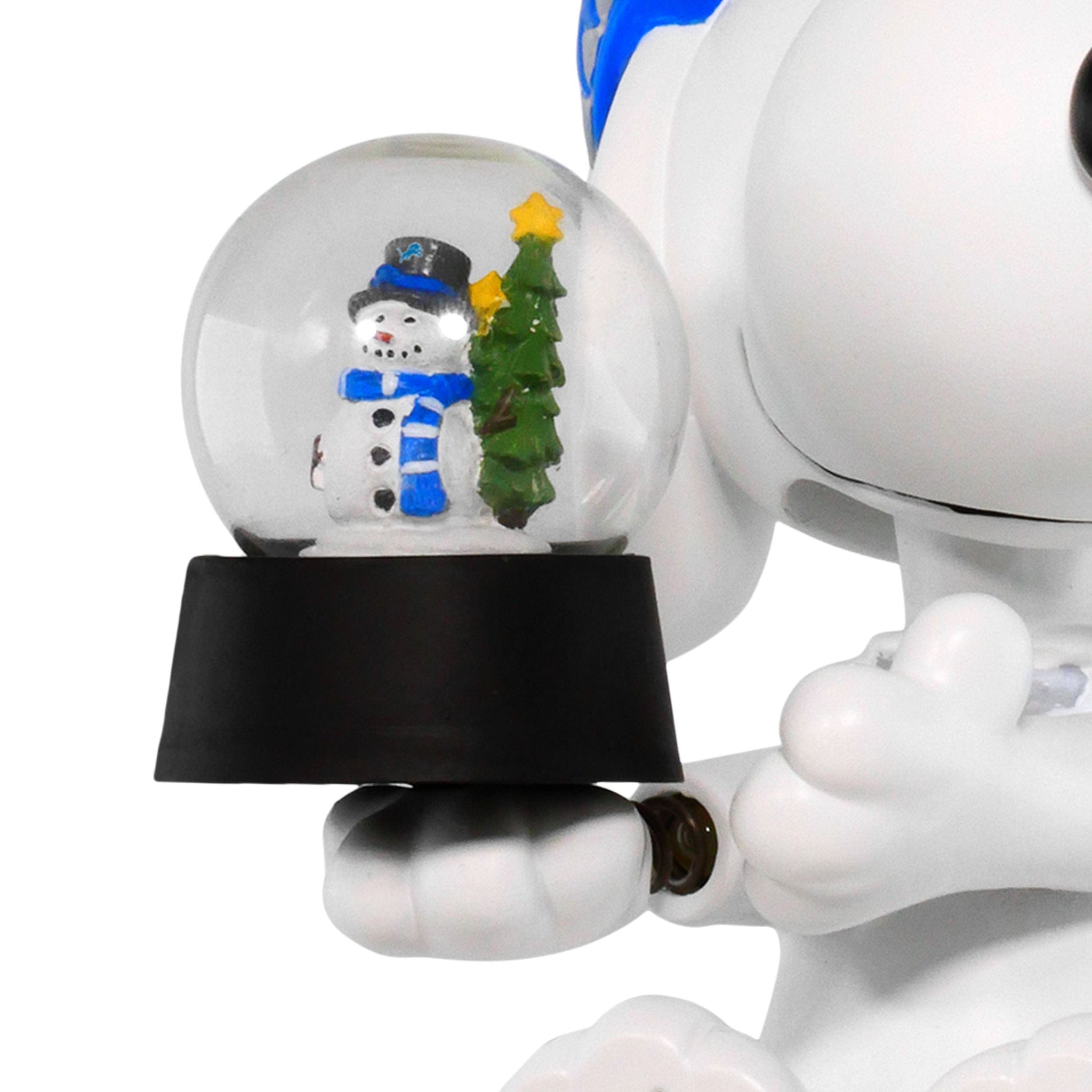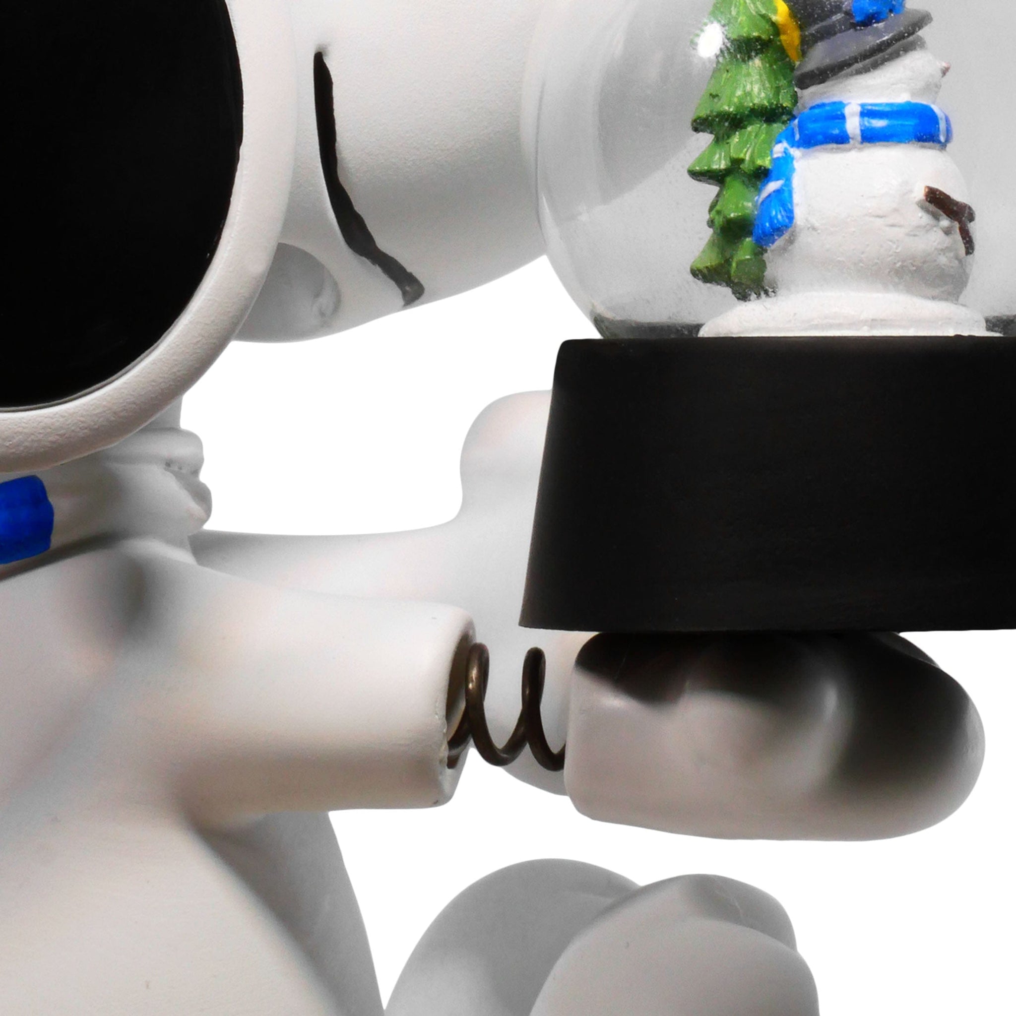 • Portrays Snoopy holding a snowglobe, bundled up in cozy winter gear for a festive seasonal look