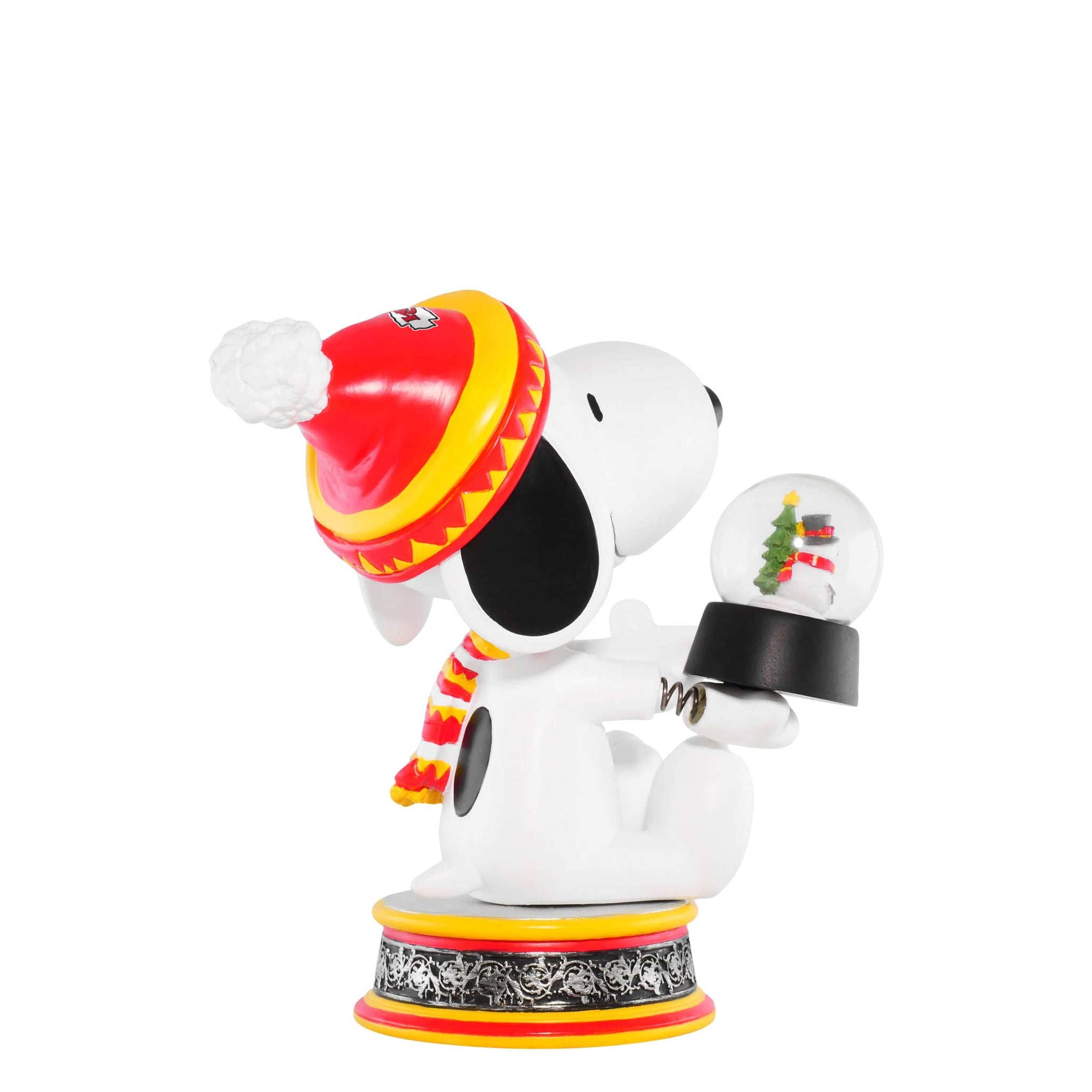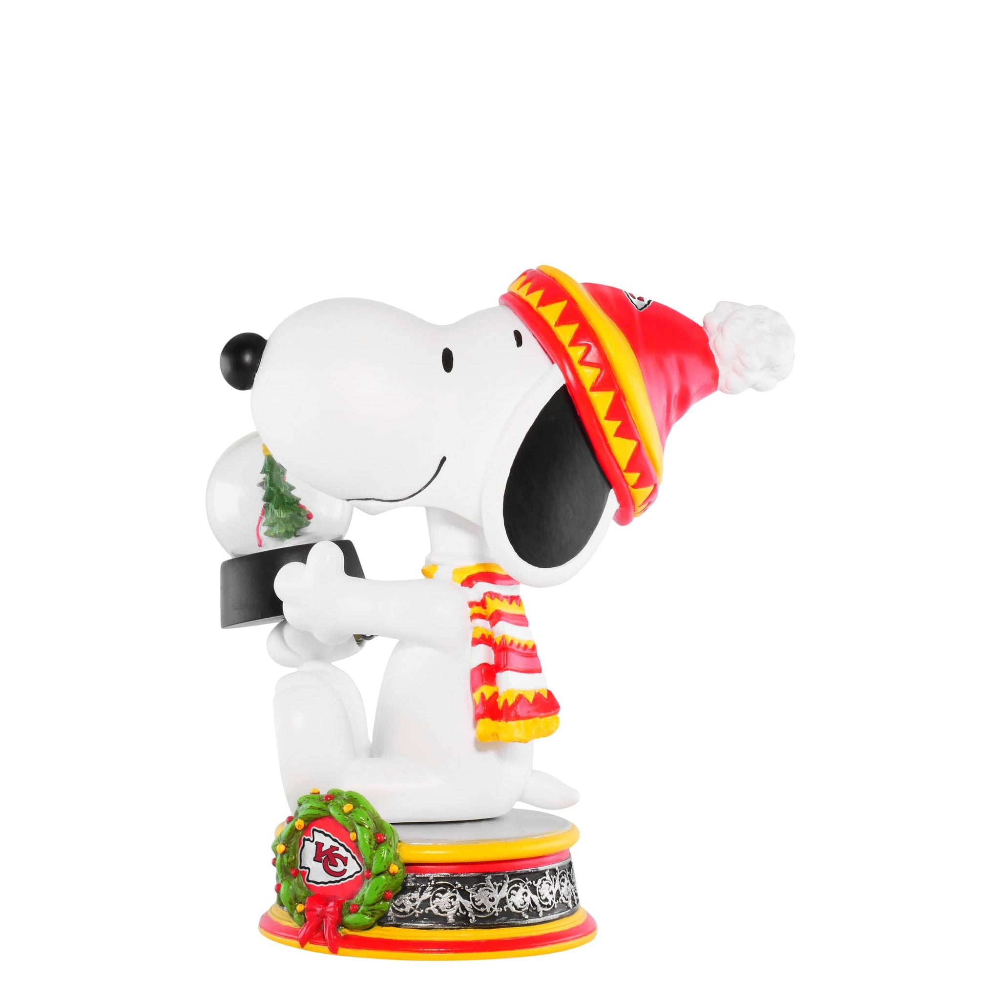 Bring wintertime fun and classic Peanuts charm to your collection with this Kansas City Chiefs Snoopy Peanuts Snowglobe Bobblehead! Featuring everyone’s favorite beagle bundled up and ready for the season, this festive piece is perfect for fans across multiple teams and leagues.