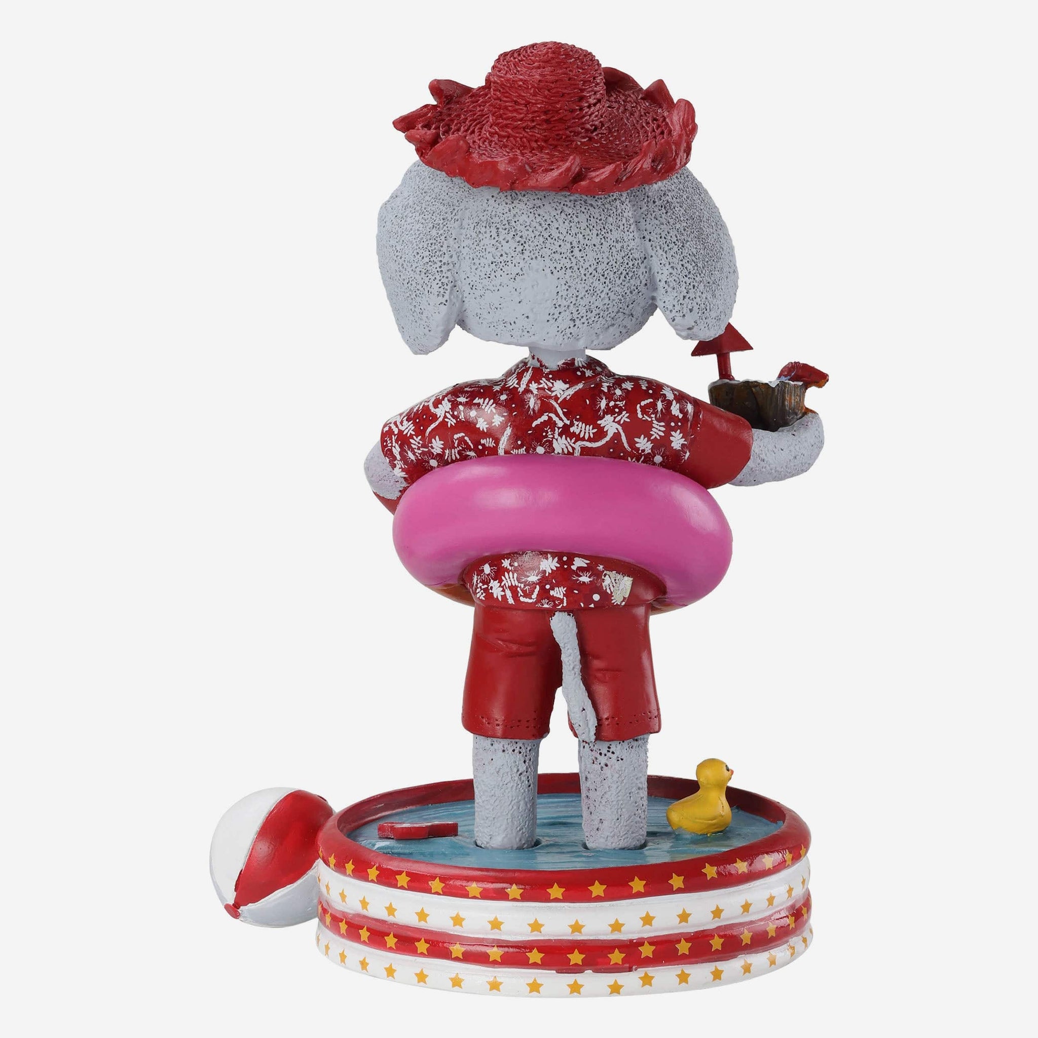 • Portrays mascot standing in a team-colored inflatable pool, posing in a tube and holding a coconut drink, ready to stay cool by the pool
