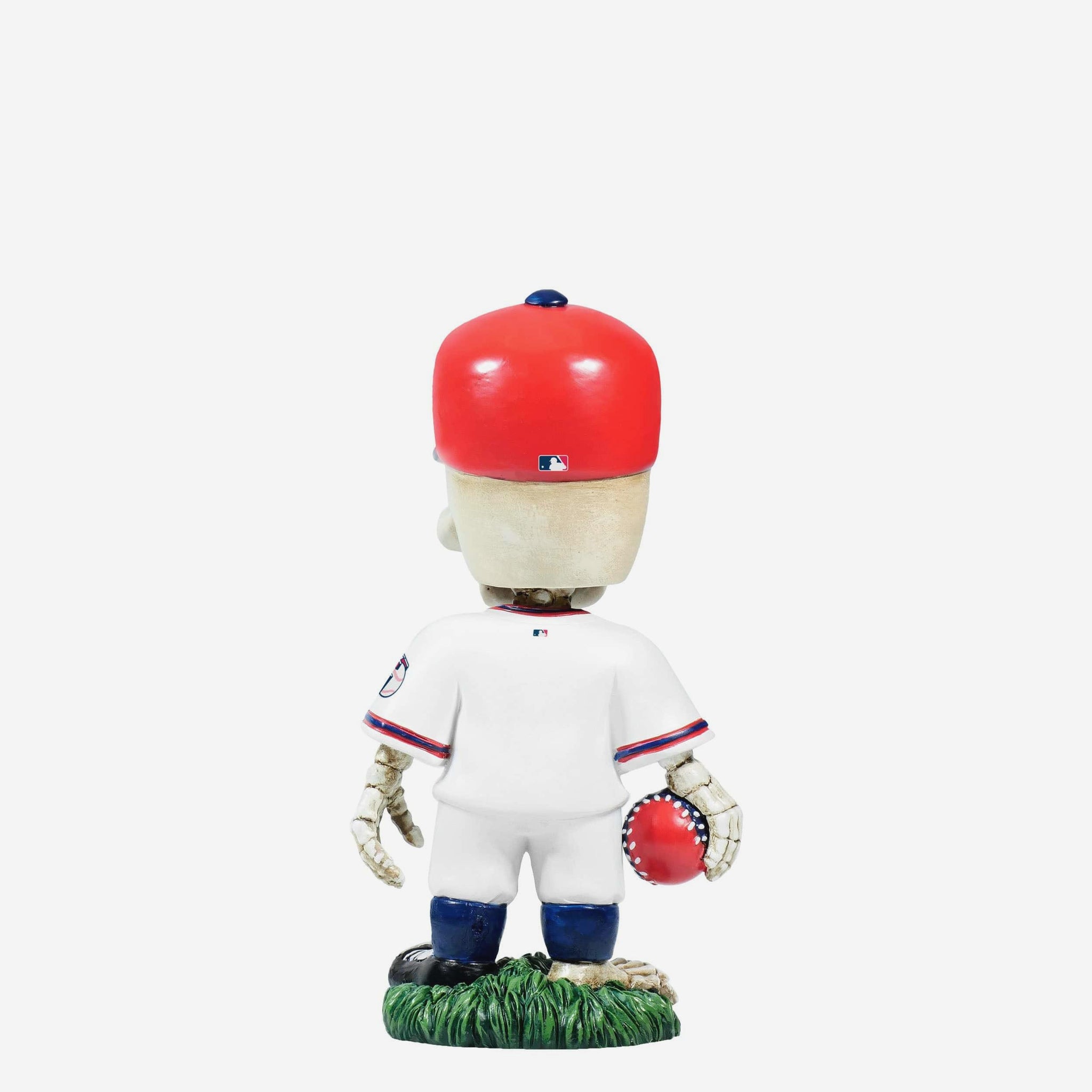 • Portrays a skeleton player wearing their team’s home uniform, ready to bring the fright to the diamond