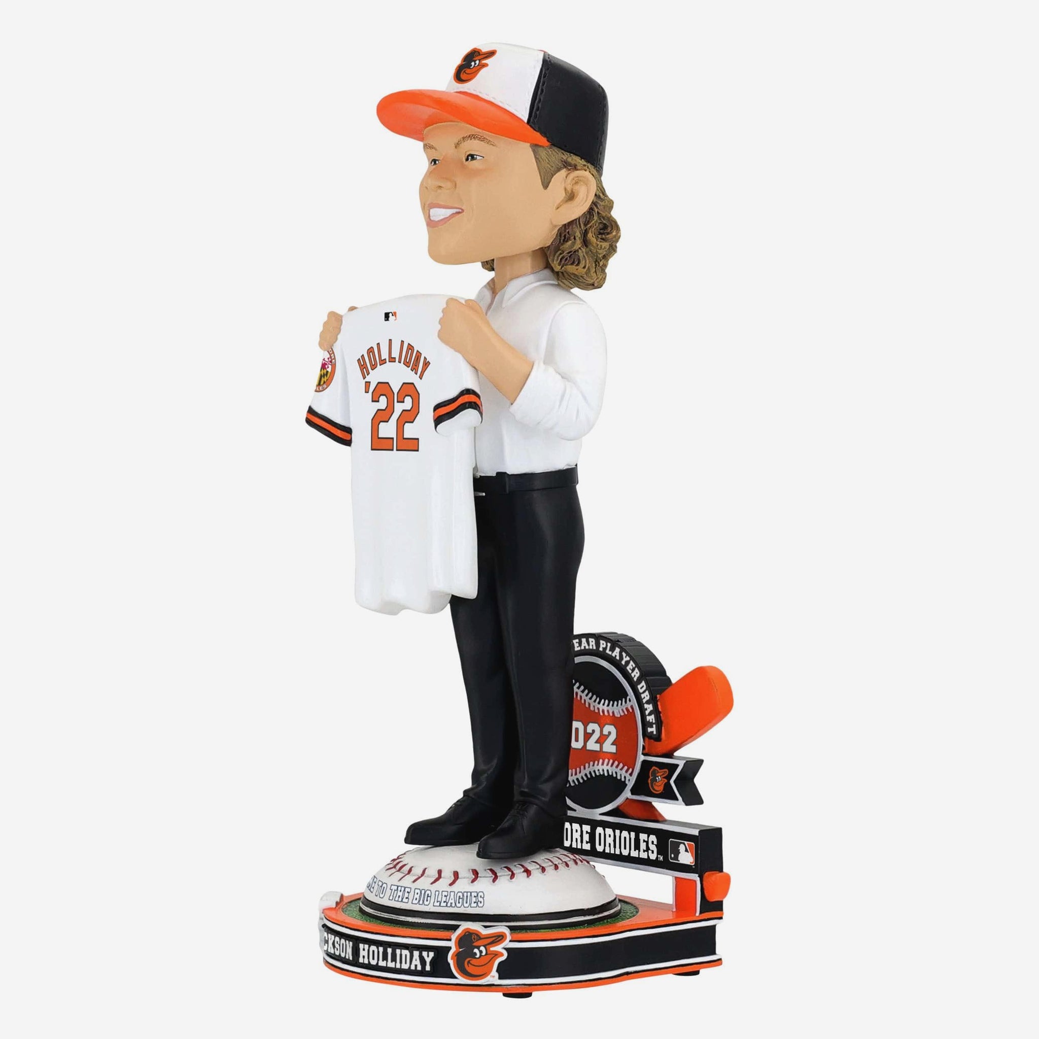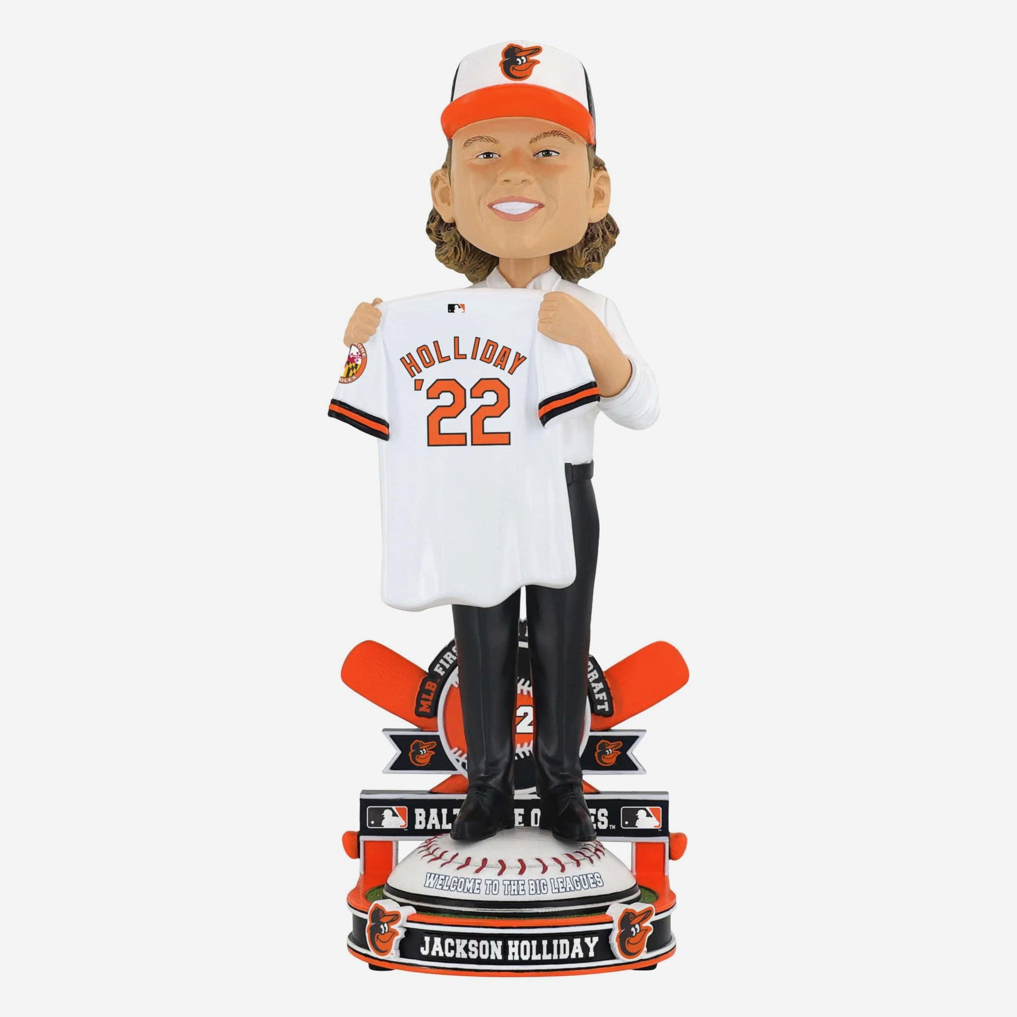 Before he was a star, Holliday was #1 in the draft! Now, he can be the number one pick for your collection with this Jackson Holliday Baltimore Orioles 2022 MLB Draft Pick #1 Bobblehead.