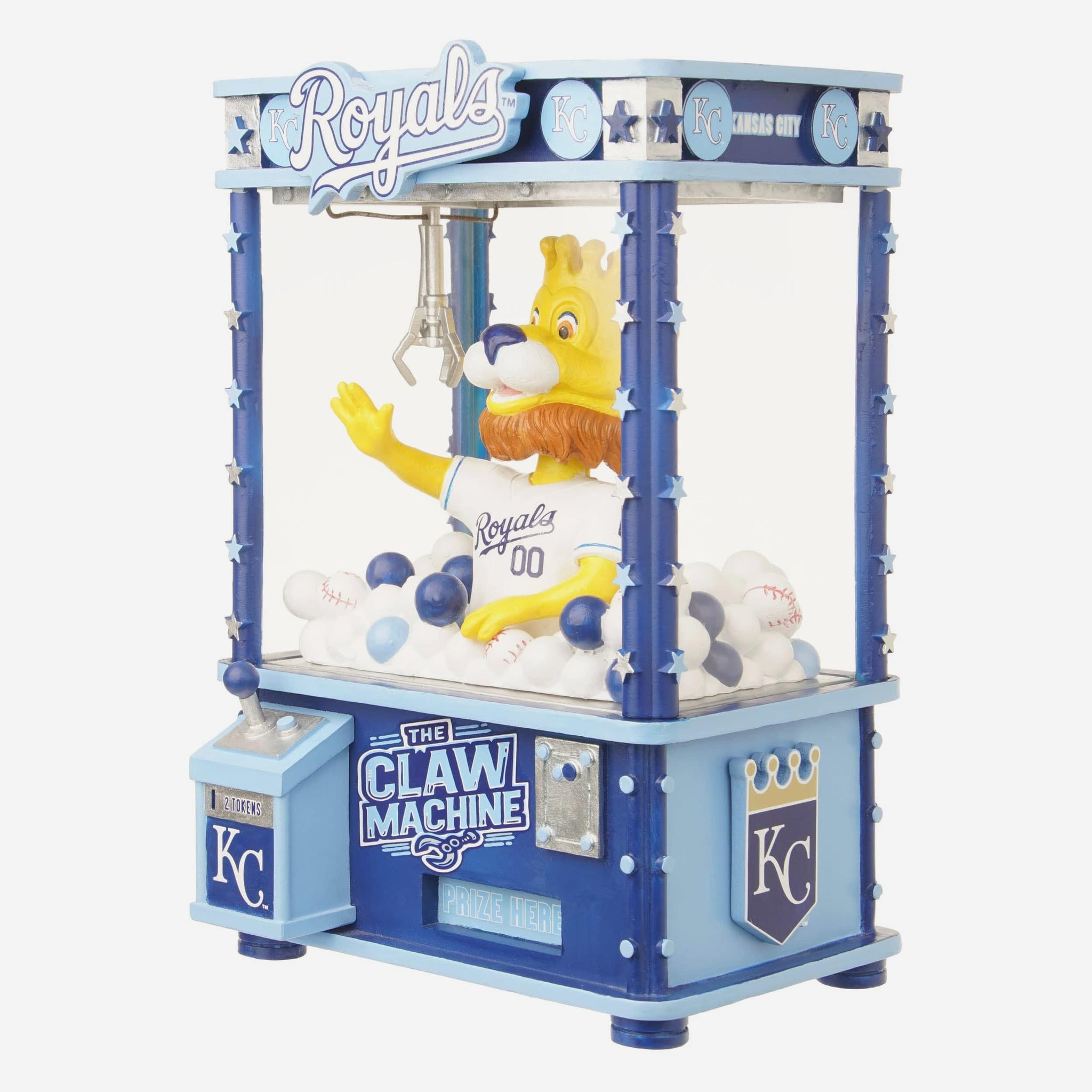 Step right up and win big! No need to swipe your game card, the Sluggerrr Kansas City Royals Claw Machine Mascot Bobblehead is bringing the fun to your fancave.