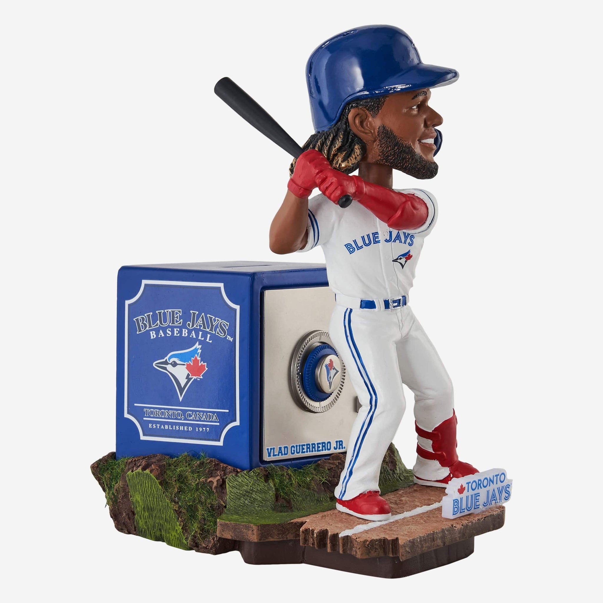 Tired: Piggy bank. Wired: Player bank. Stash your cash and (spare) change the game with the Vladimir Guerrero Jr. Toronto Blue Jays Bank Bobblehead.
