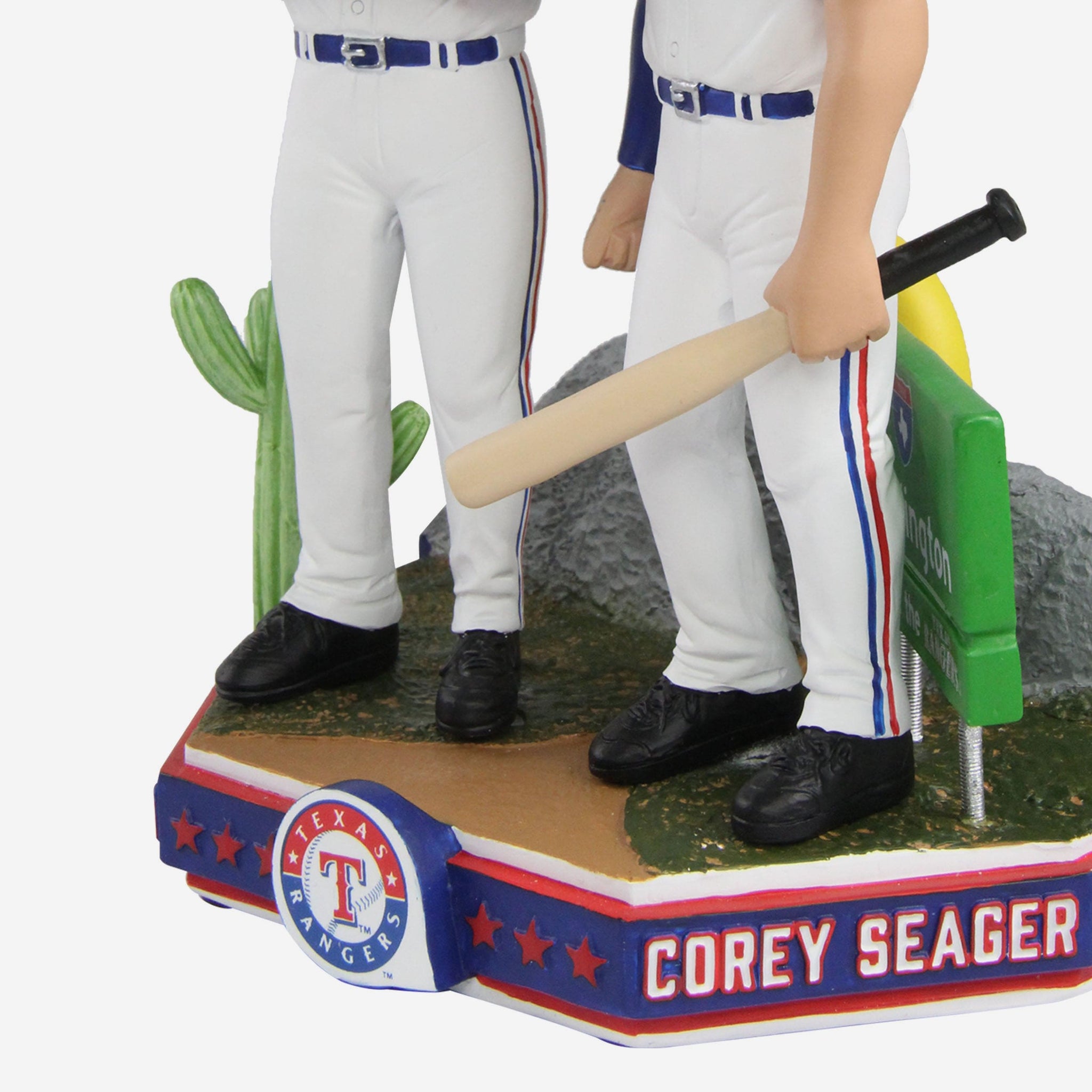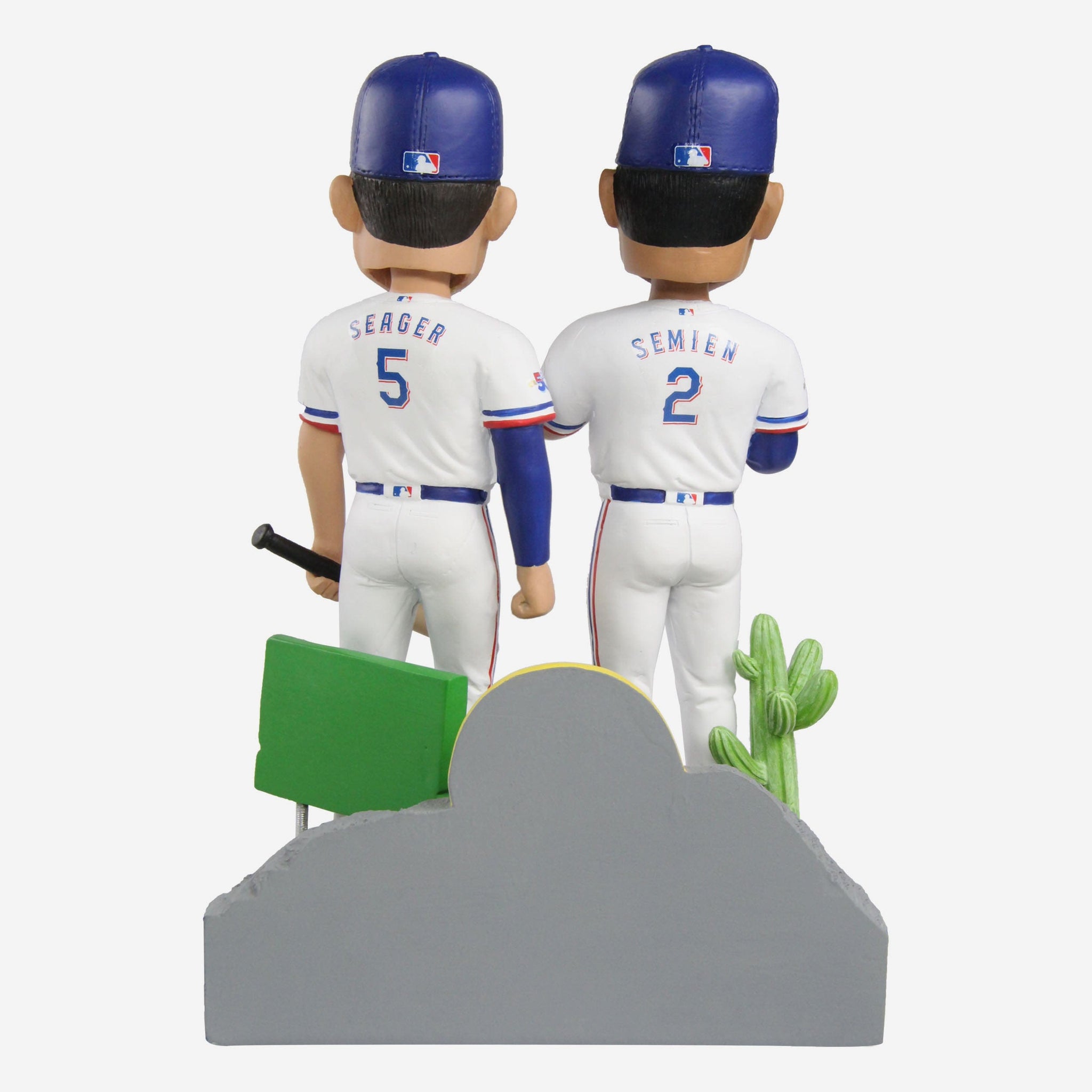 Next stop: Arlington! Turn two with baseball's newest dynamic duo when you welcome them to the team with this Corey Seager & Marcus Semien Texas Rangers Next Stop Dual Bobblehead!