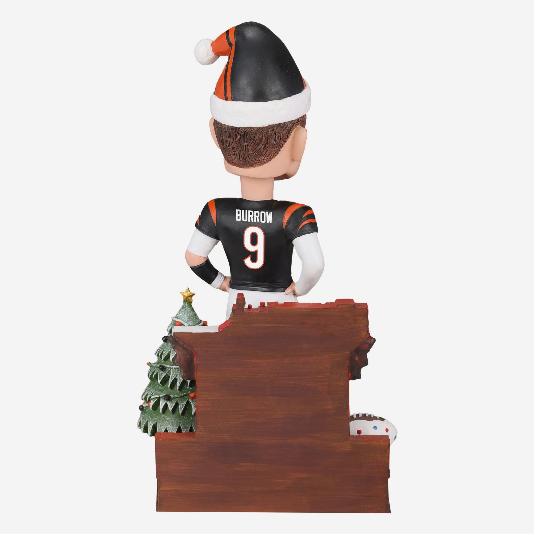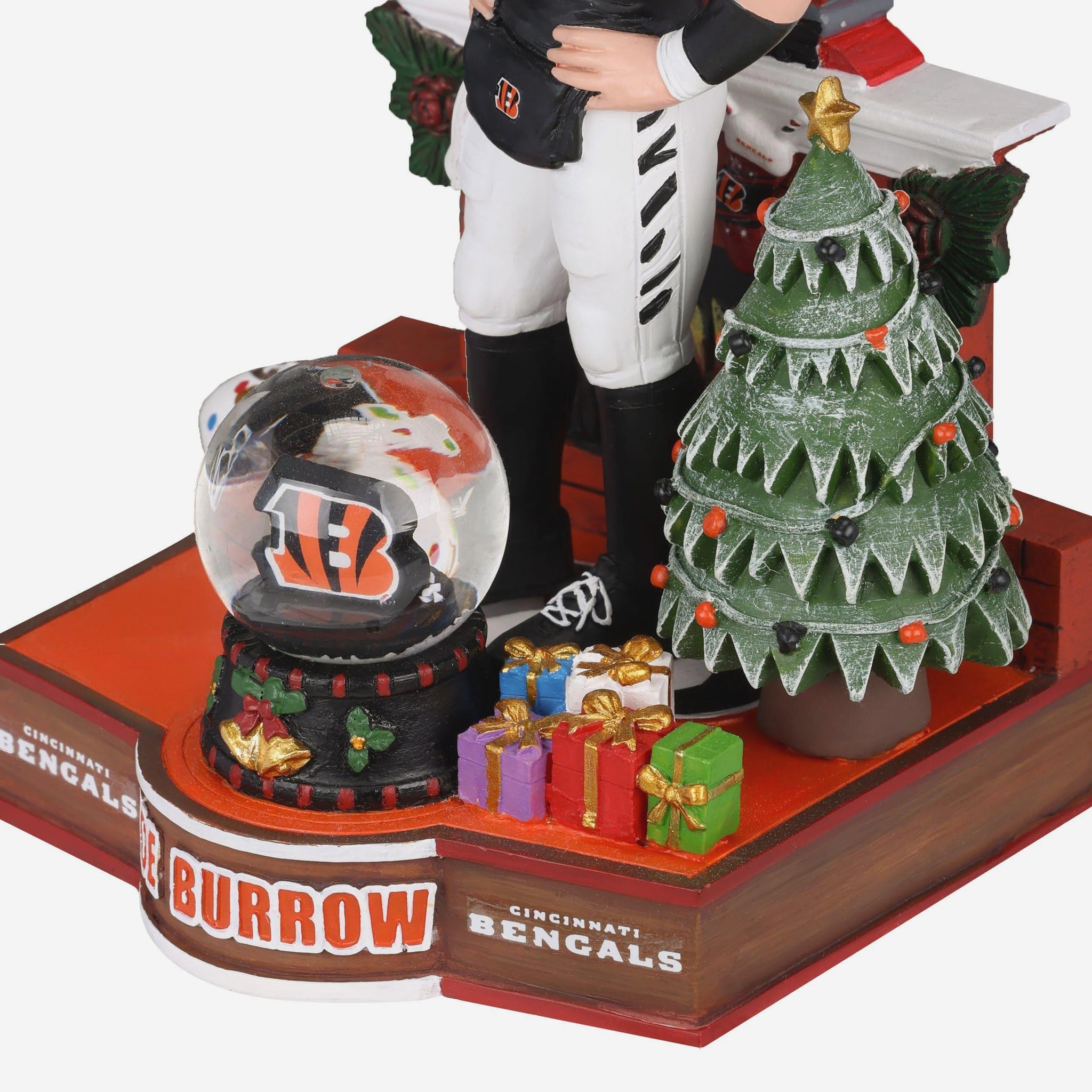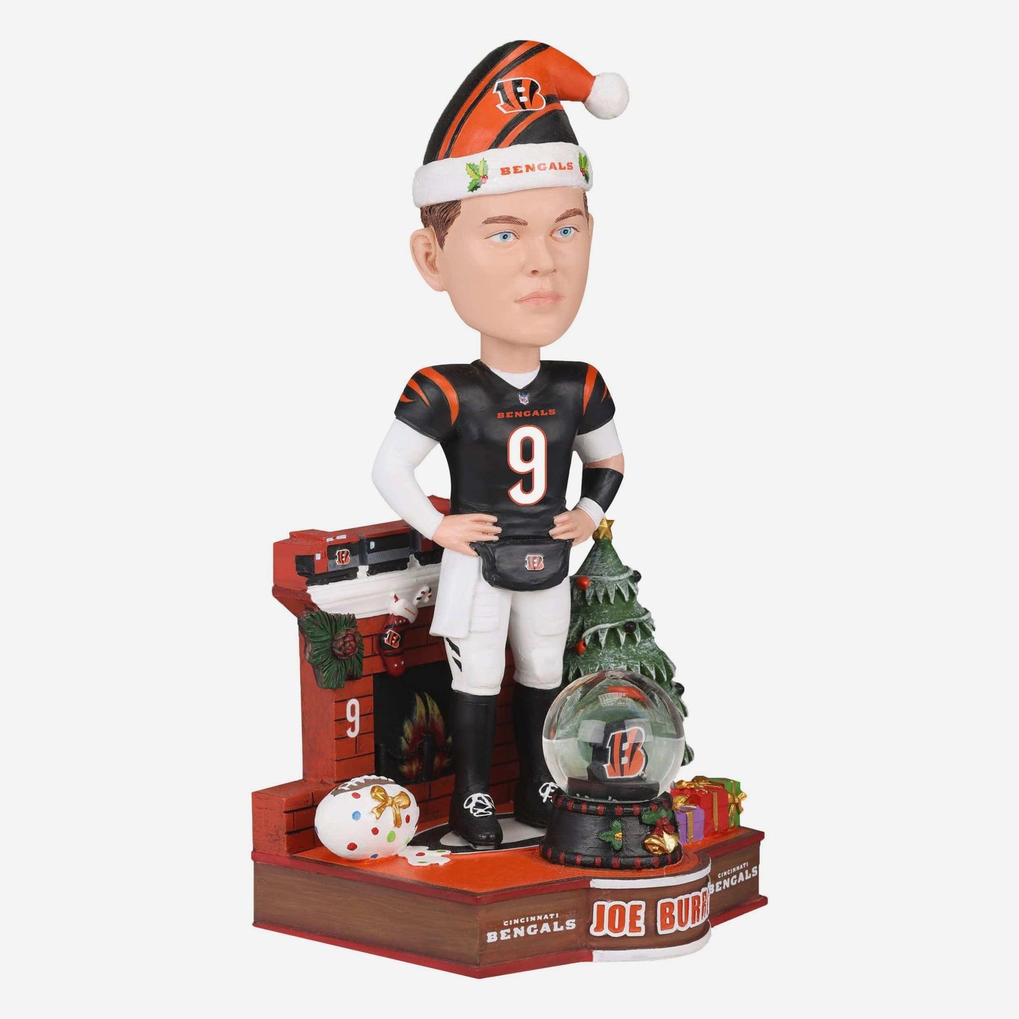 - Portrays Burrow wearing his gameday uniform and wearing a santa hat standing in front of a detailed snow globe centerpiece for a festive, heartwarming scene