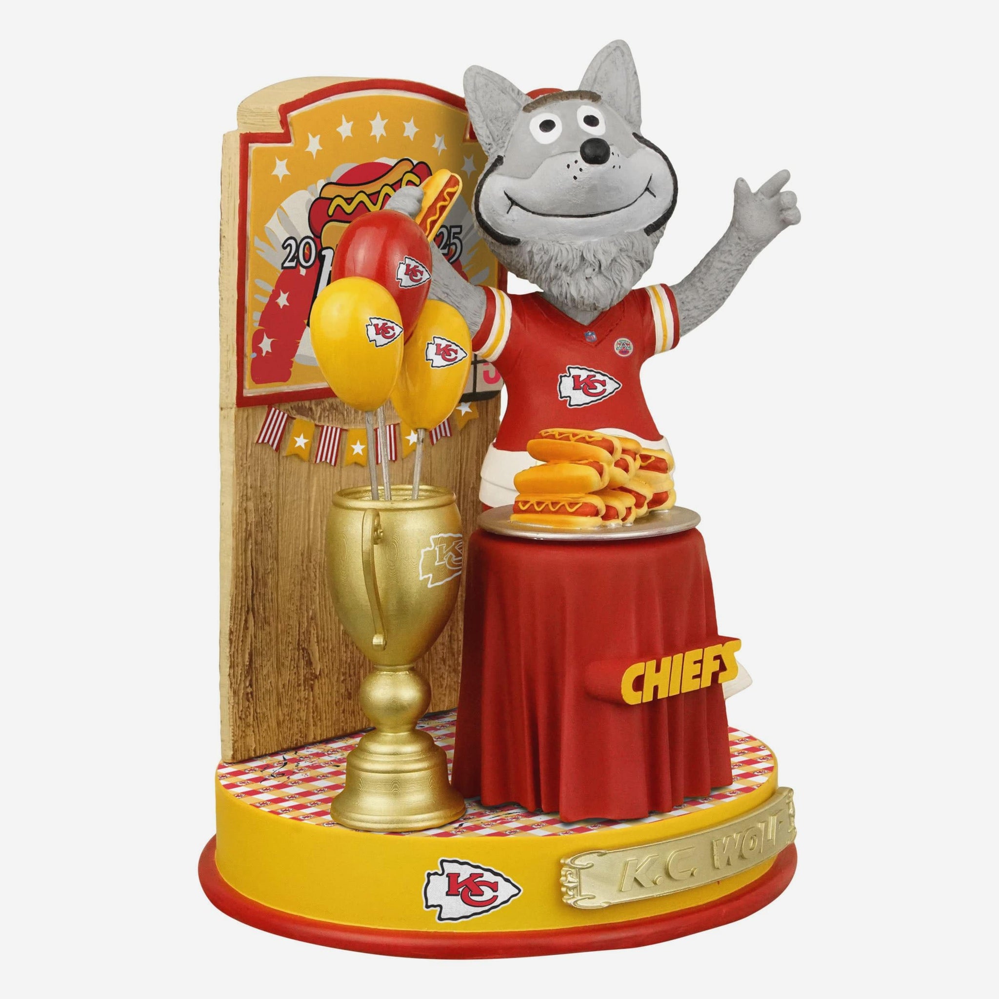 It’s time to house some hot dogs! Bring the action (and the appetite) home with this K.C Wolf Kansas City Chiefs Hot Dog Eating Contest Bobblehead.