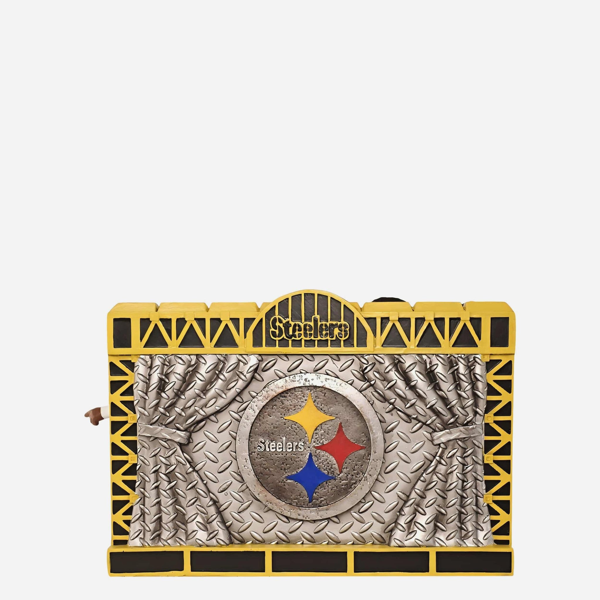 • Thematic team colored, metal backdrop and base with team wordmark name display that will look great in your Steelers collection