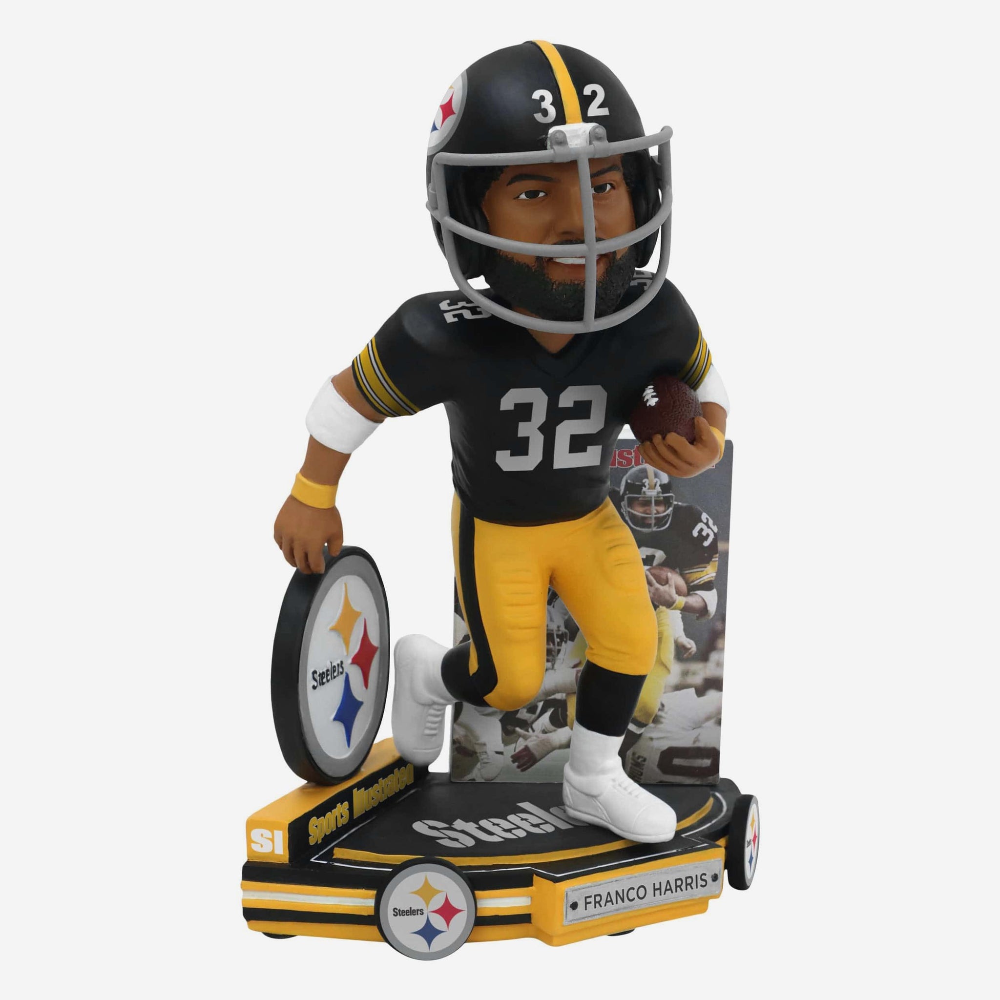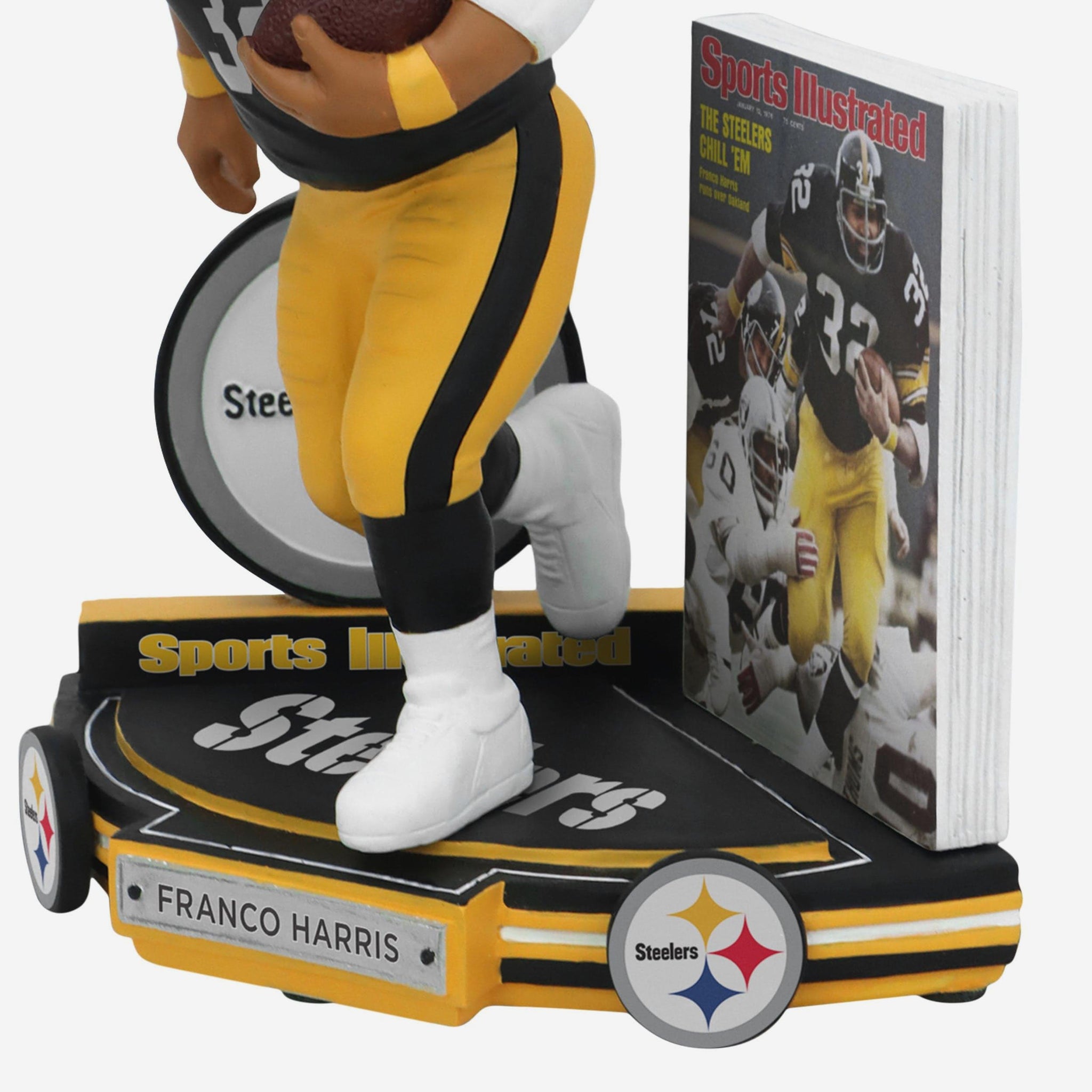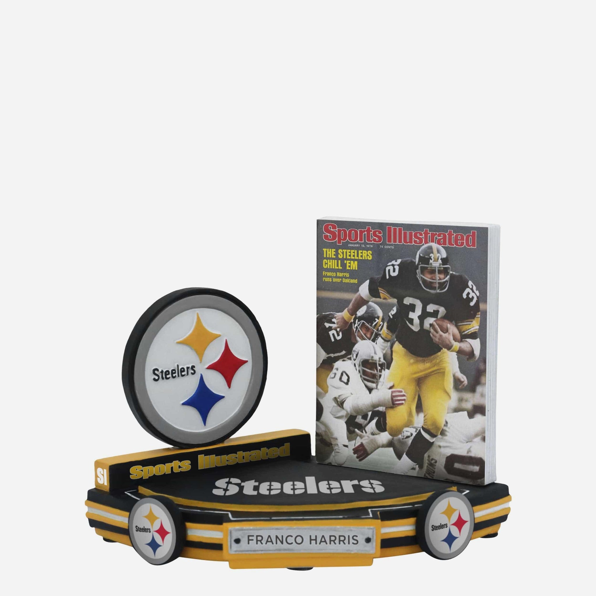 Chill Em Like Franco! Celebrate the Steel Curtain’s icy cool with the Franco Harris Pittsburgh Steelers Chill Em 1976 AFC Champions Sports Illustrated Cover Bobblehead.