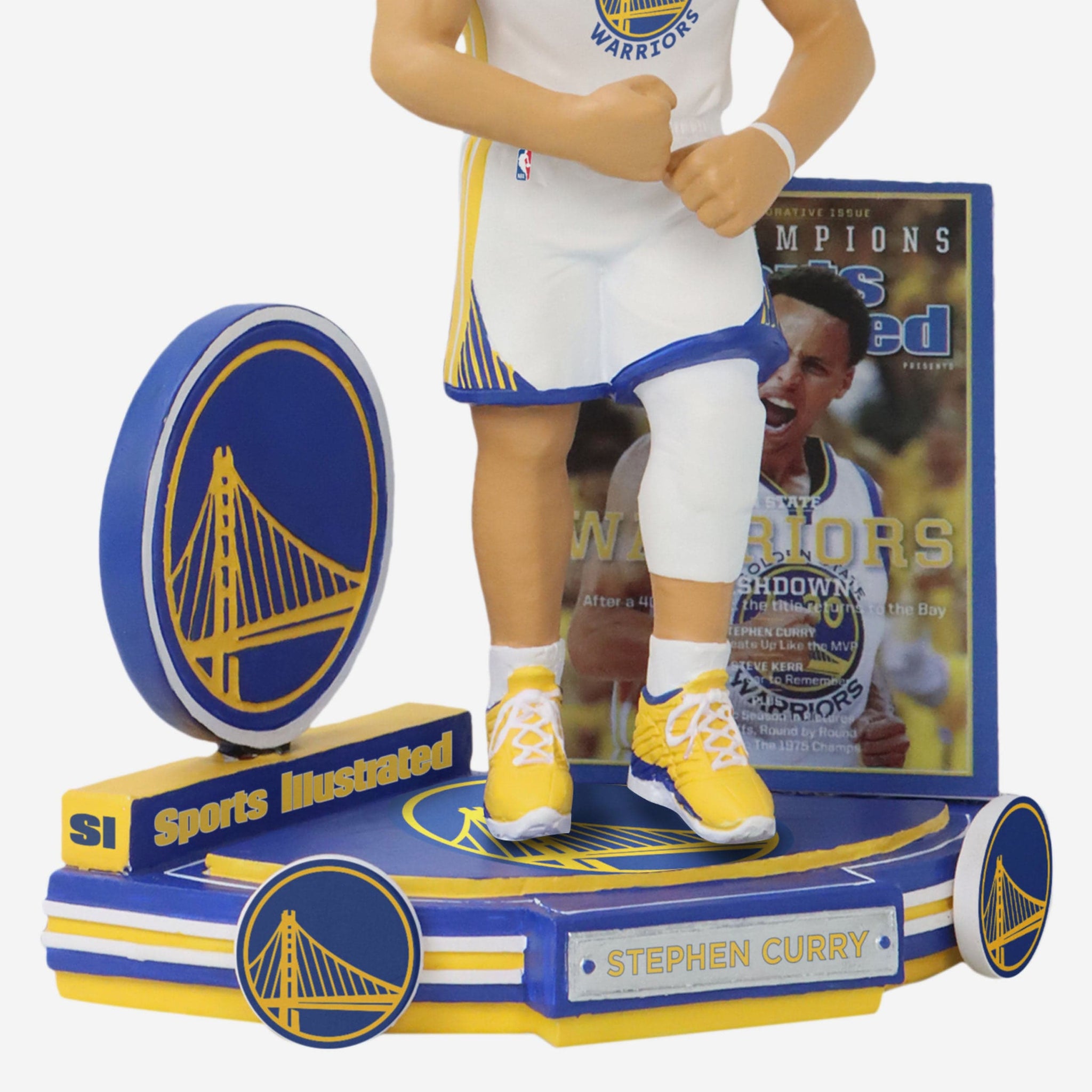 • Portrays Curry wearing his white gameday uniform, re-creating his famous Sports Illustrated cover