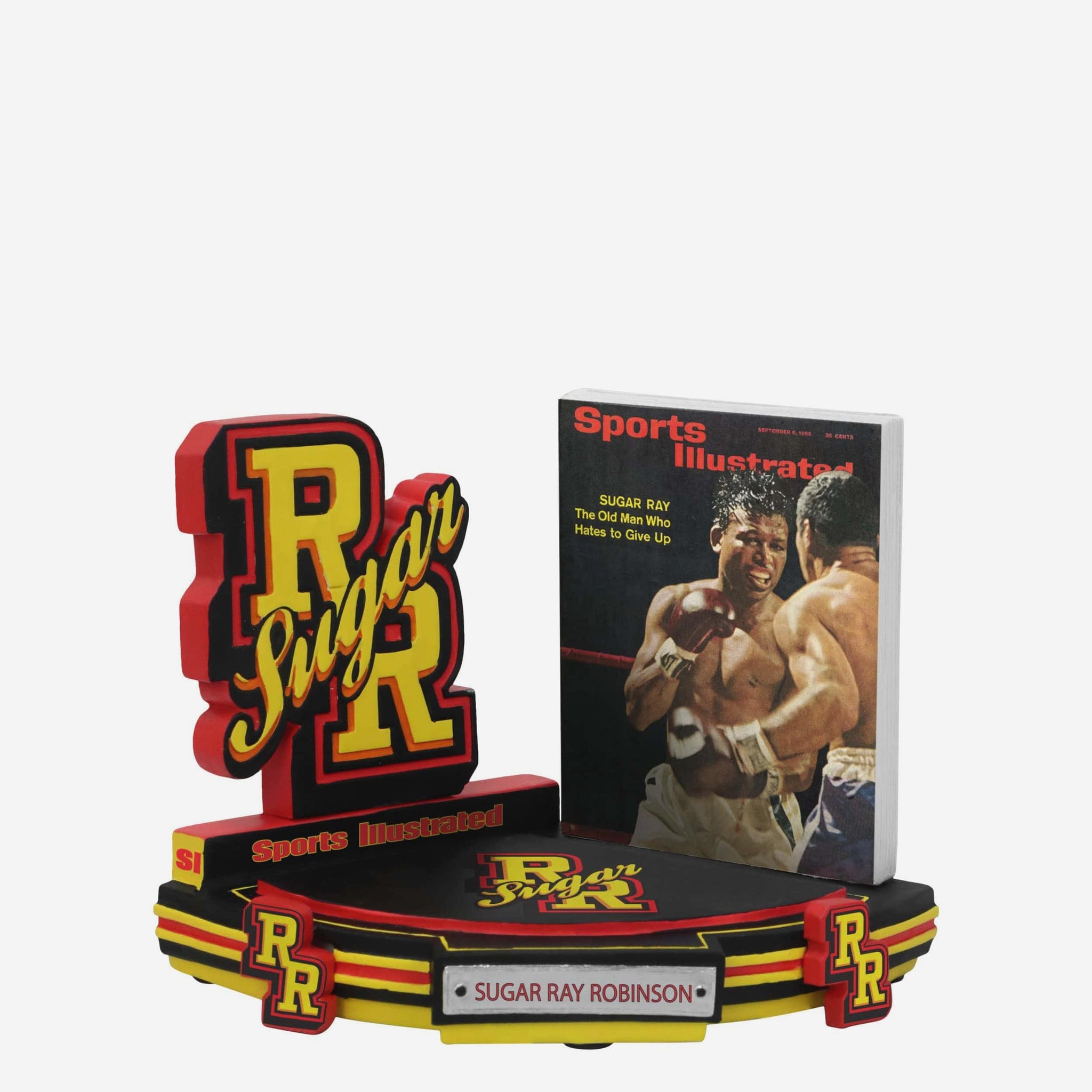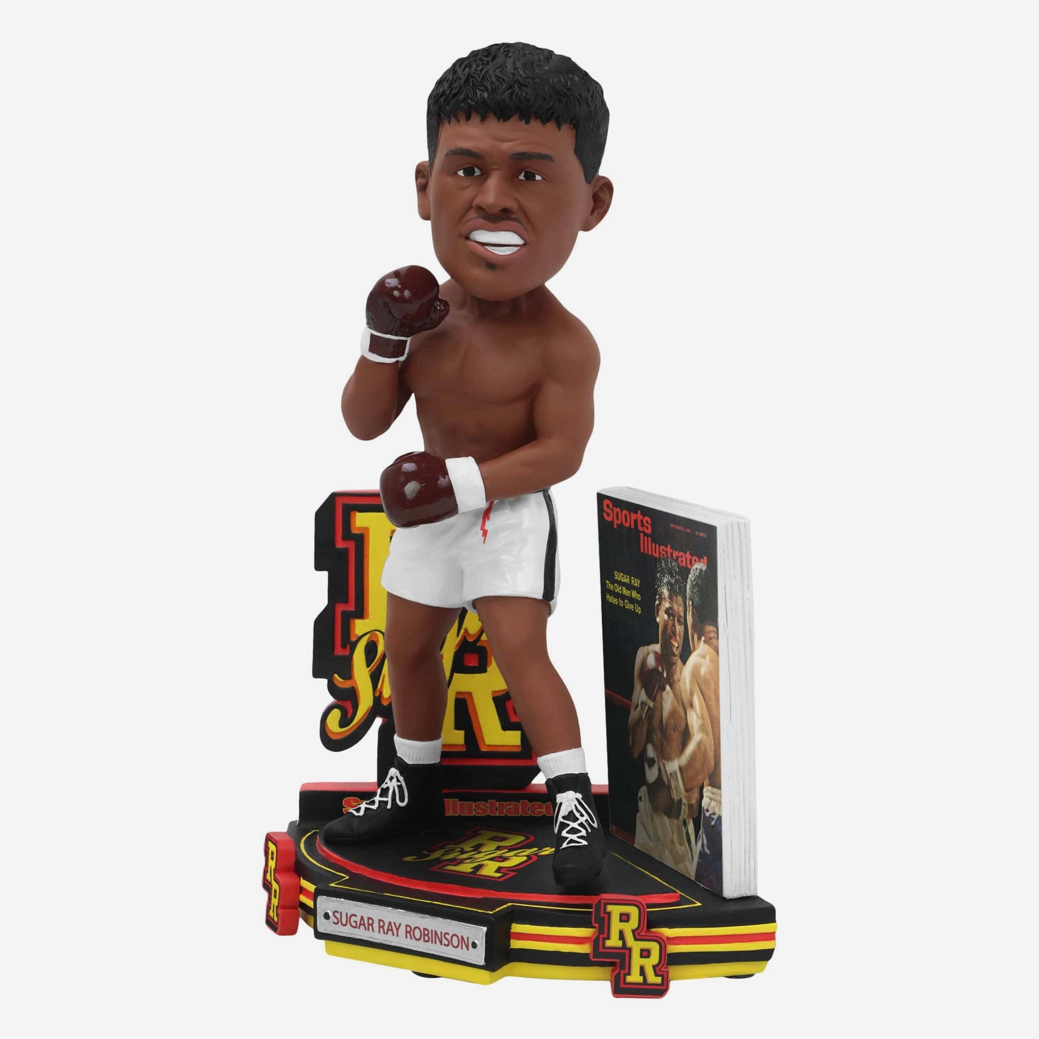 Step into the ring with one of boxing’s all-time greats! Relive a legendary moment in sports history with the Sugar Ray Robinson 1965 Light Middleweight Boxing Sports Illustrated Cover Bobblehead.