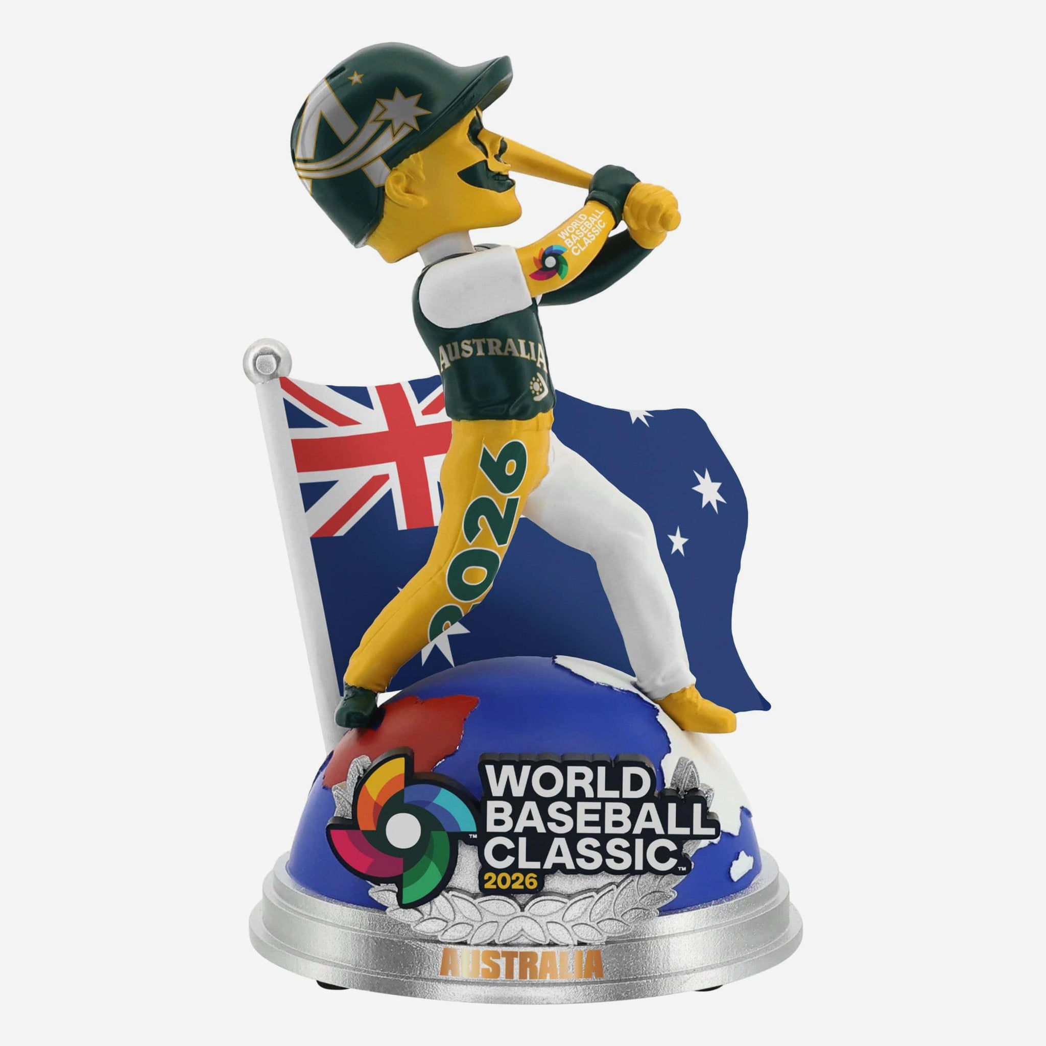 Step up to the plate and swing for the globe! Showcase your passion for international competition with this Australia 2026 World Baseball Classic Bobbles On Parade Bobblehead, a dynamic tribute to the pride, power, and pageantry of baseball’s biggest worldwide showdown.
