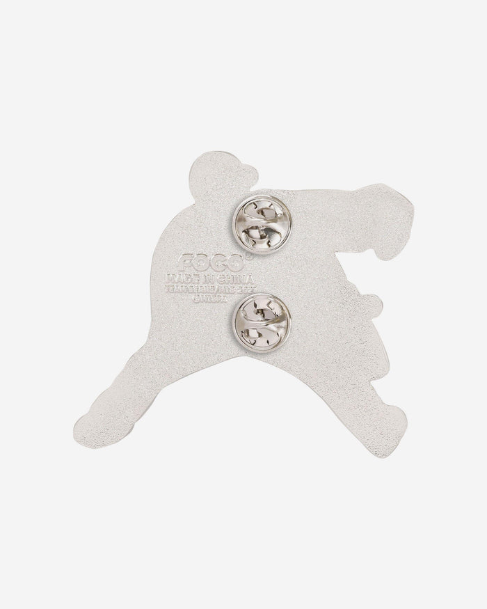 • Player pin depicts player wearing his gameday uniform in an action pose, jersey number display, and signature display