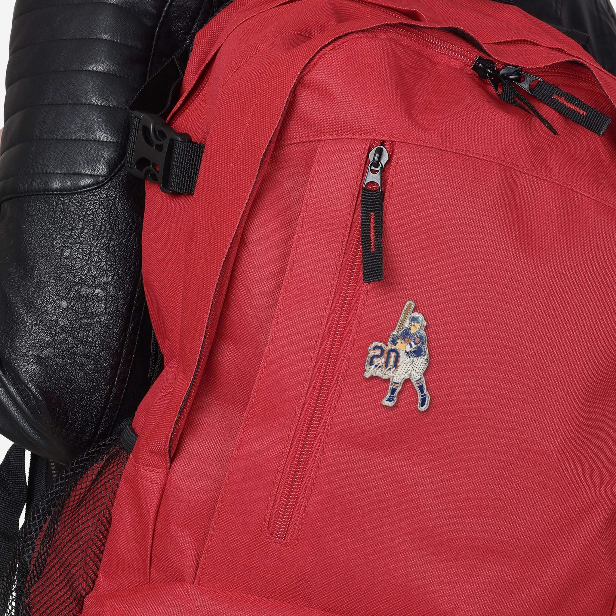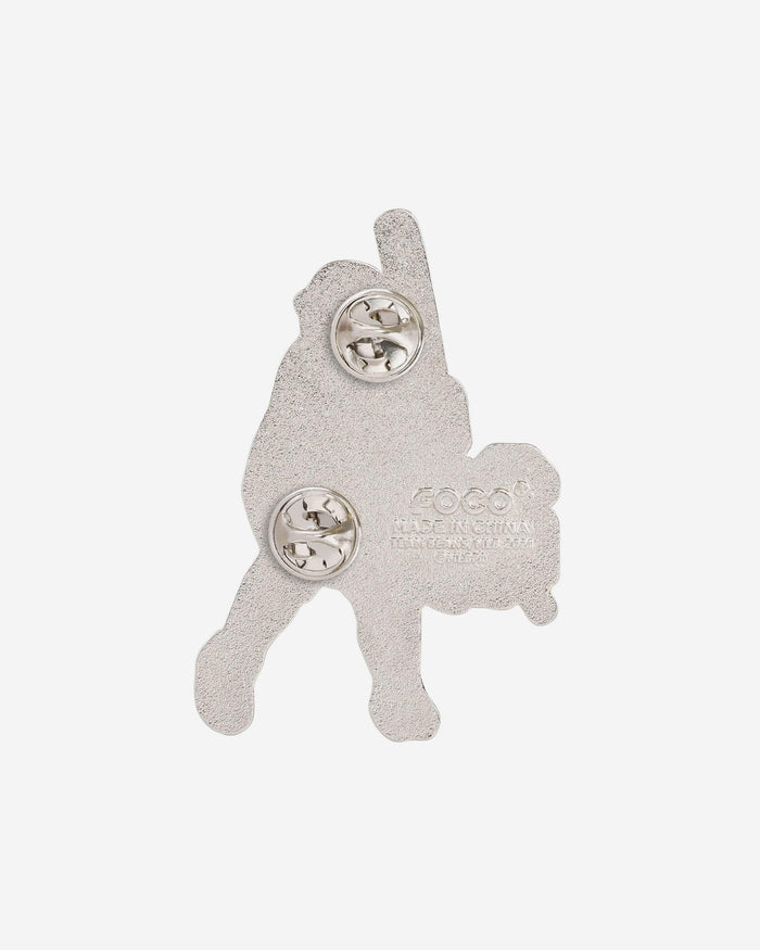 - Player pin depicts player wearing his gameday uniform in an action pose, jersey number display, and signature display